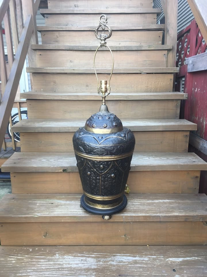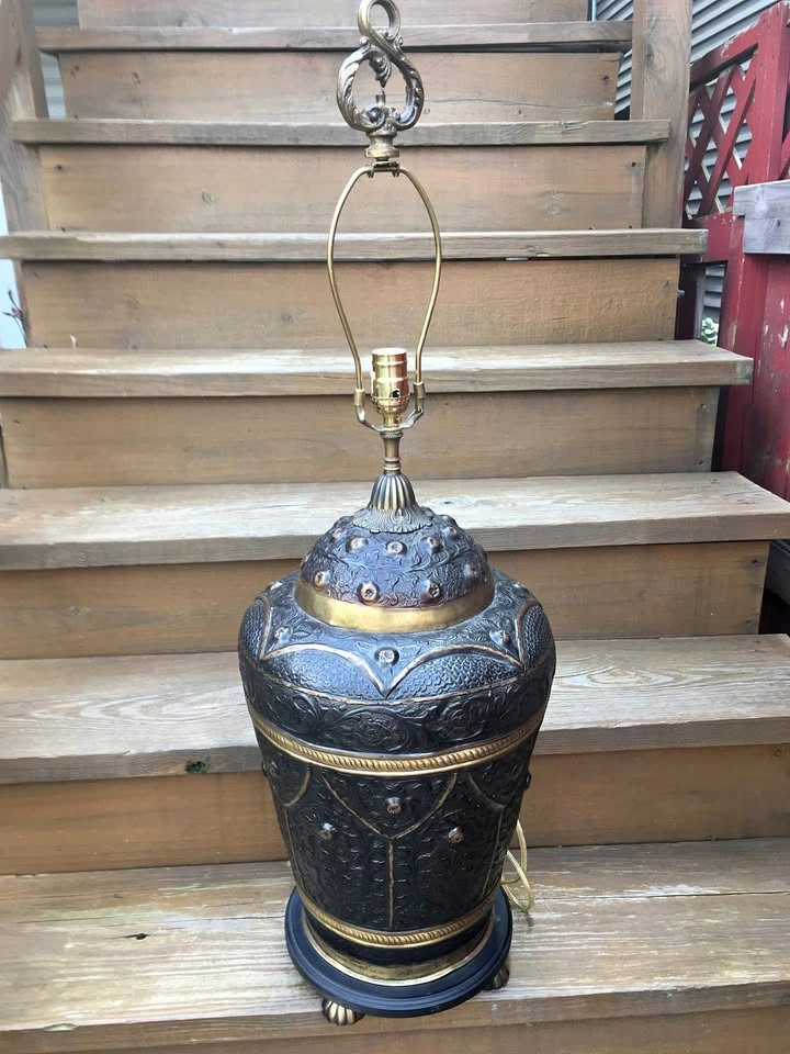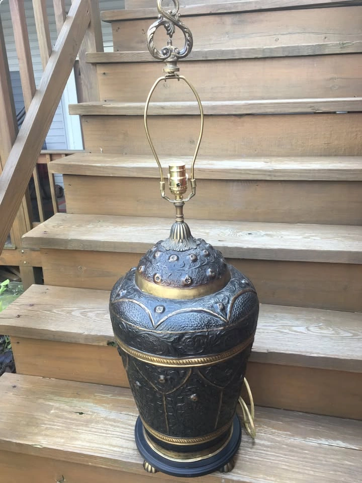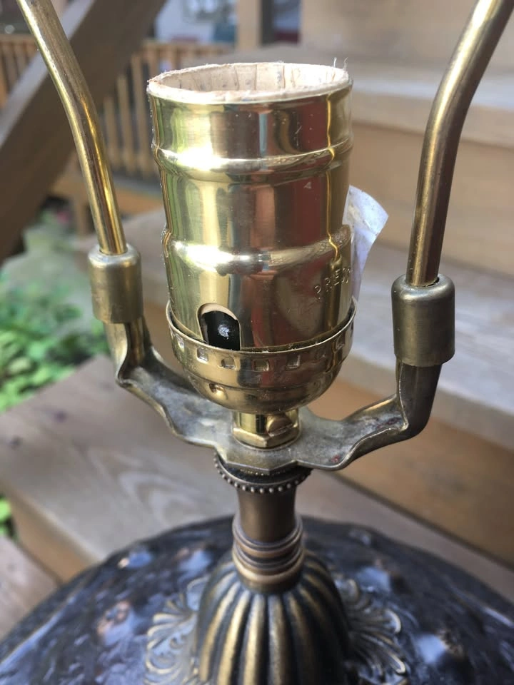 This lamp was originally 619, but am offering it here for considerably less because it doesn't come with the shade and it needs the switch replaced. Base is approx. 21" tall. The pictures were taken outside for best lighting and color representation. From a smoke and pet free home. Check out in person before purchasing. Thanks for looking.