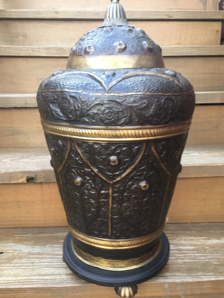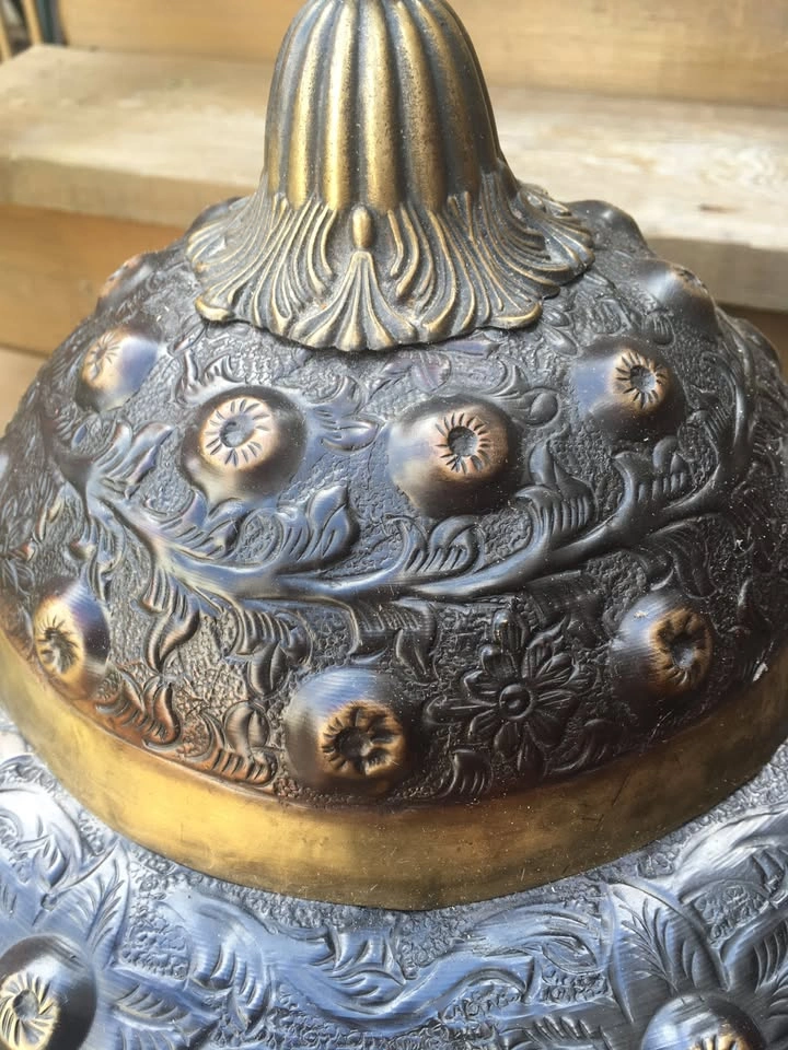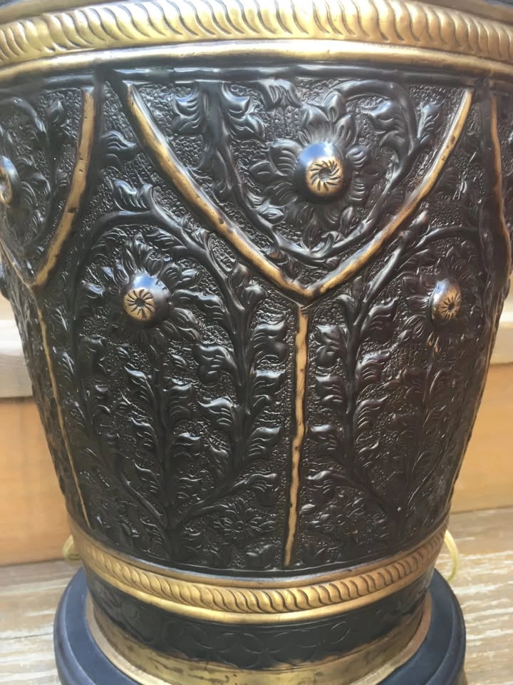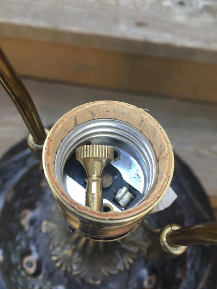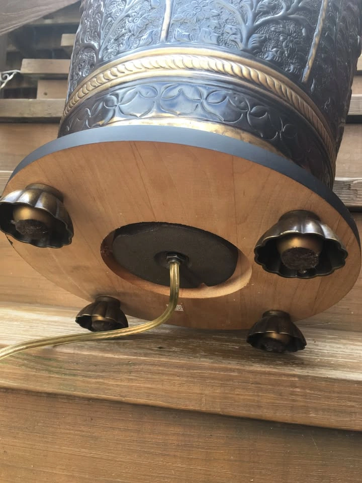 This lamp was originally 619, but am offering it here for considerably less because it doesn't come with the shade and it needs the switch replaced. Base is approx. 21" tall. The pictures were taken outside for best lighting and color representation. From a smoke and pet free home. Check out in person before purchasing. Thanks for looking.