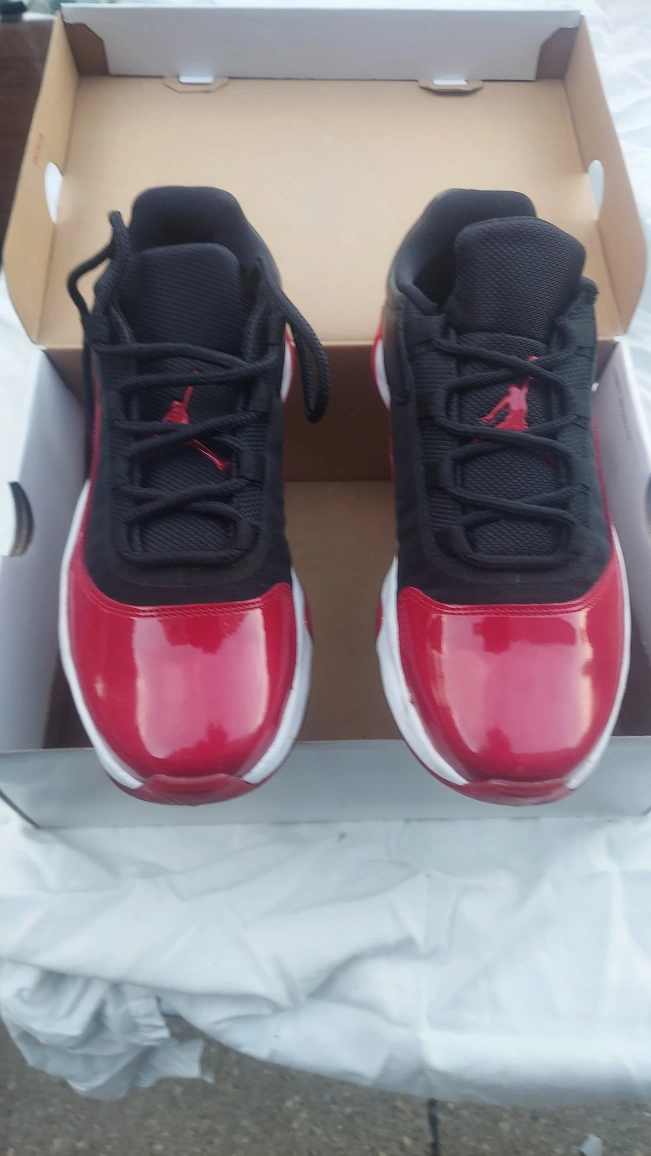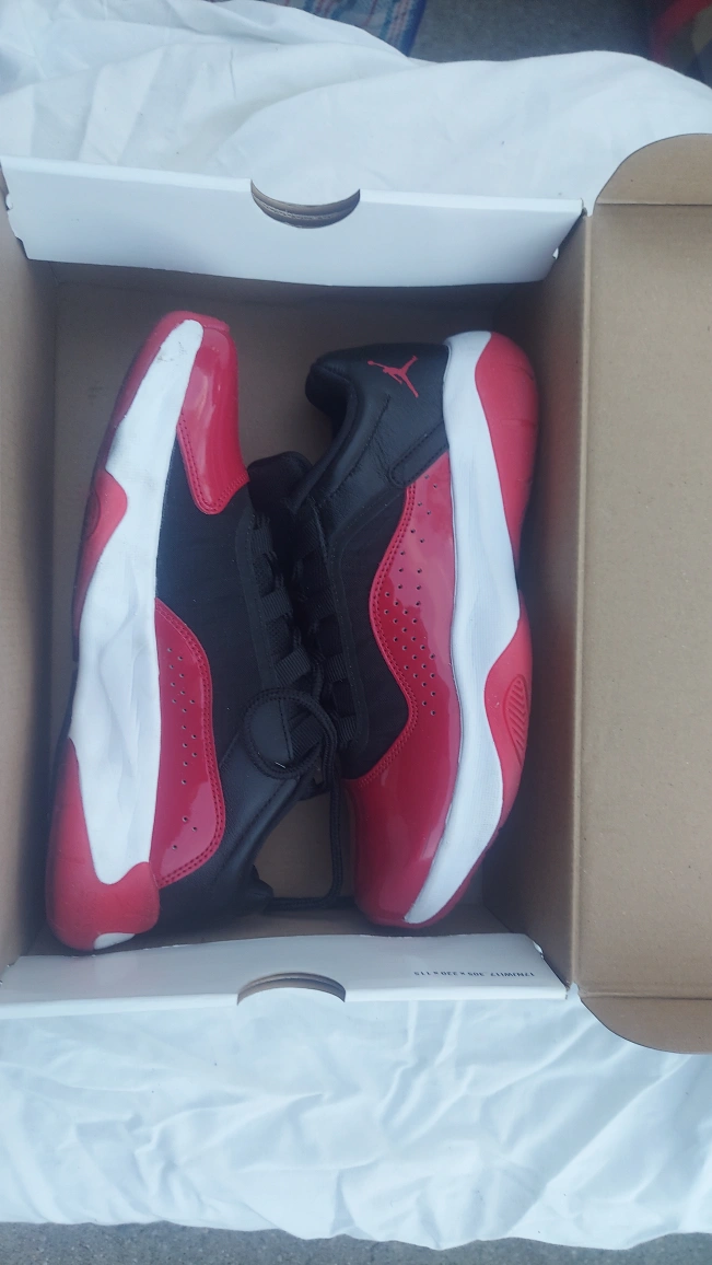 119Selling a pair of Women's Air Jordan 11 Low in red and black. They are a size 8. The box is included. Please see the pictures for the condition of the soles.