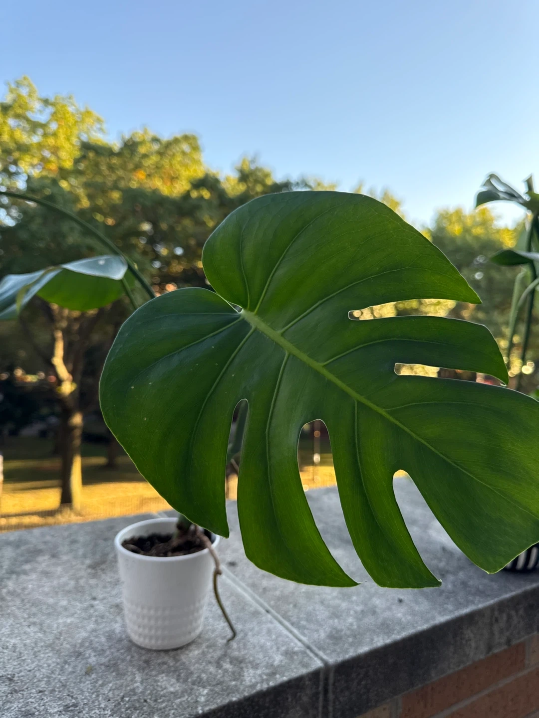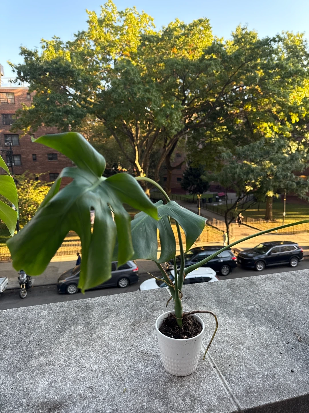 Selling a healthy monstera plant in a white pot. It's a beautiful plant that will add a touch of green to any space! Plant currently reaches about 28” wide, 24” tall