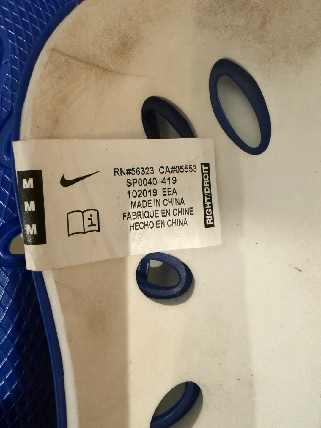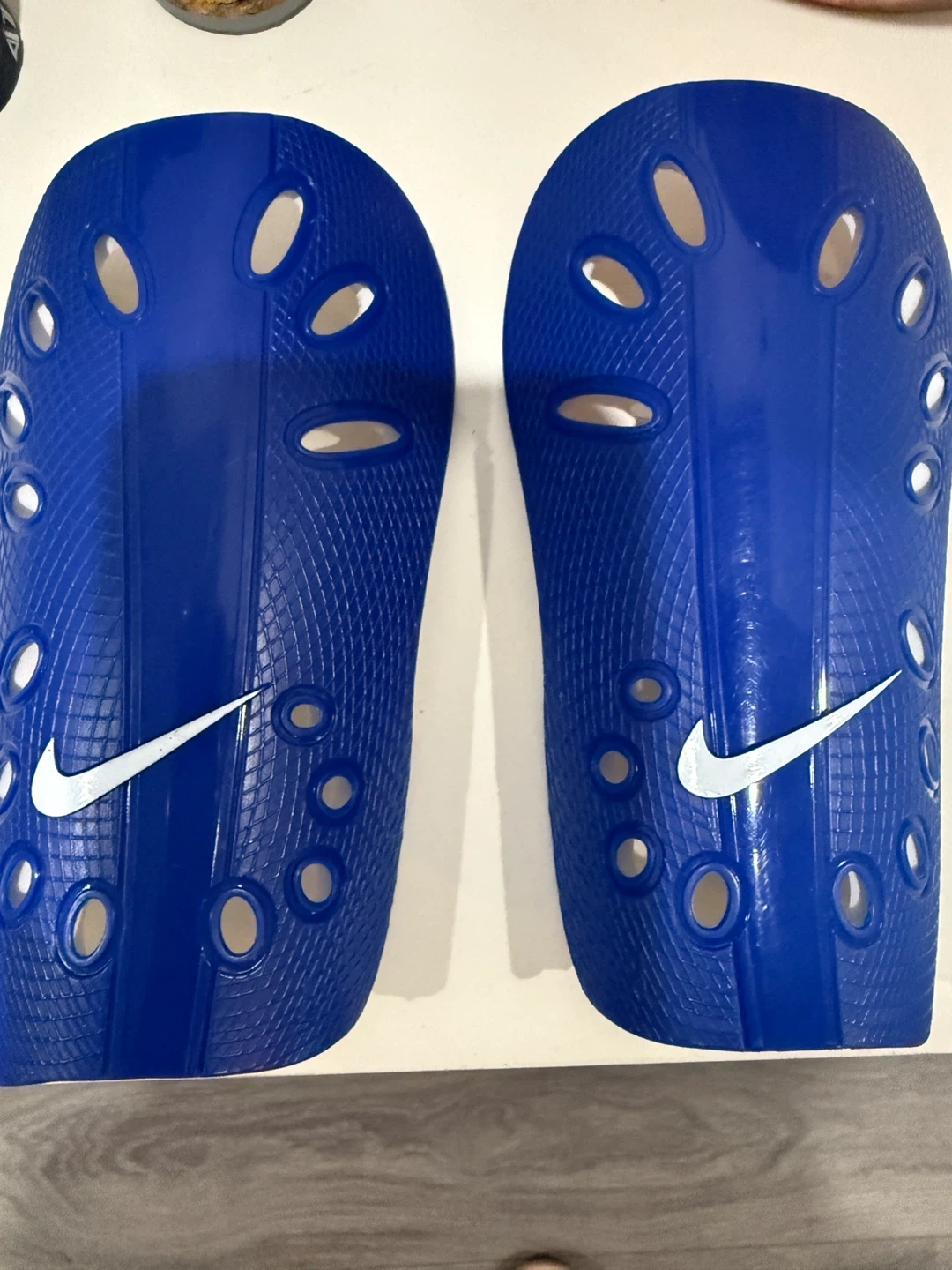Selling a pair of Nike Mercurial Lite shin guards in blue. They are size M and in good condition. Perfect for soccer or other sports!