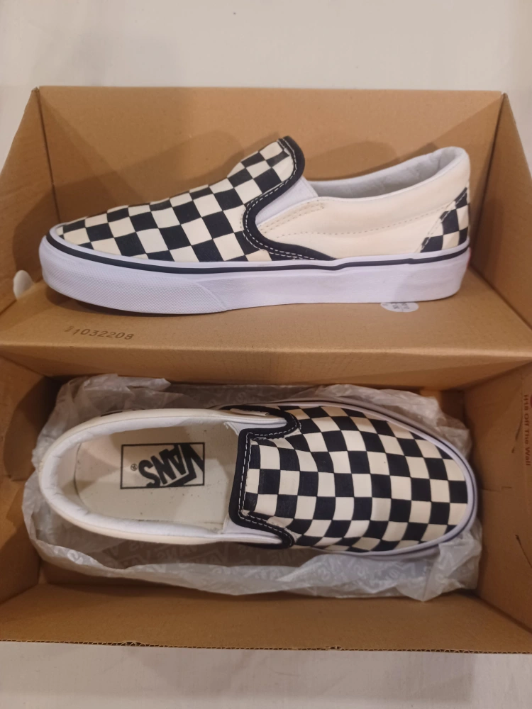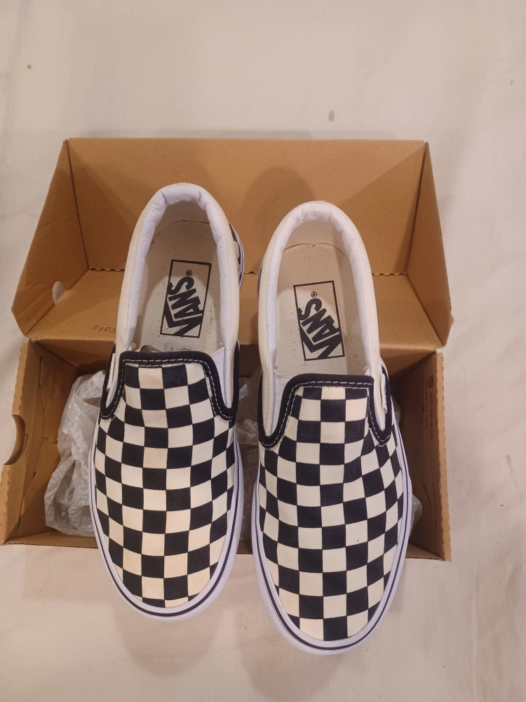 Selling a pair of Vans Kids Classic Slip-On shoes in the iconic checkerboard pattern! These are in great condition and come with the original box. They are a size 10 (US). Perfect for your little one!