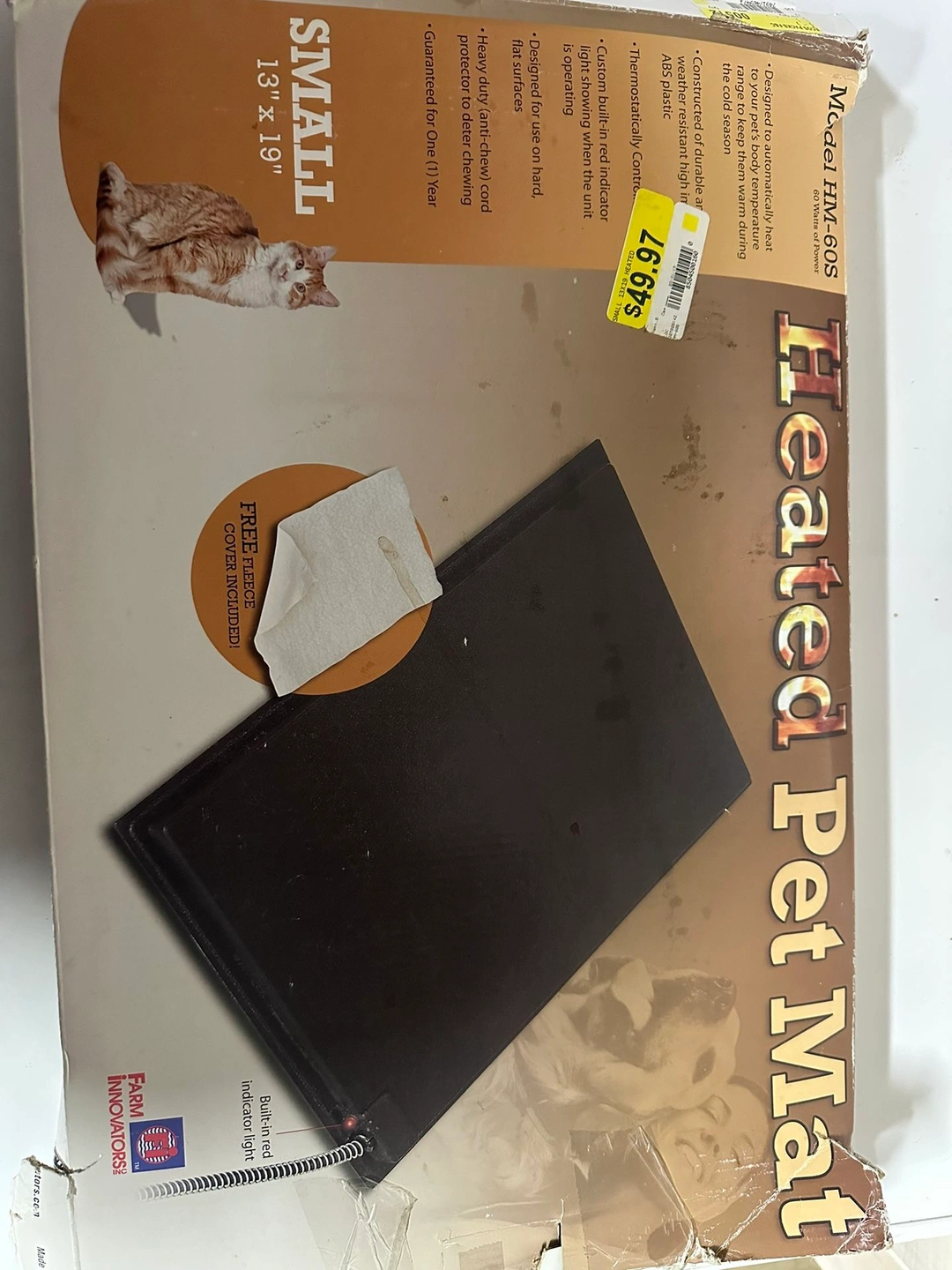 New animal heat pad hard plastic can be used outdoors. Cash only at pick up.