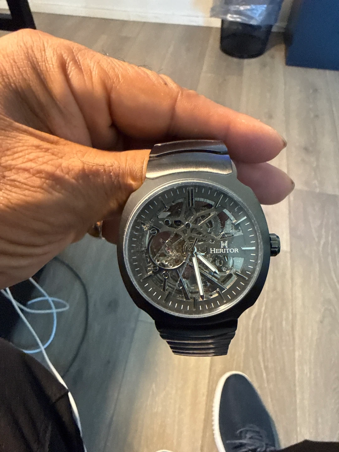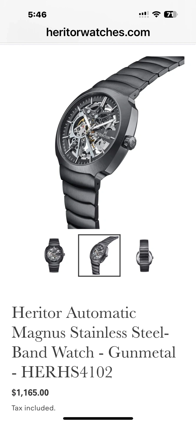 76Selling a HERITOR AUTOMATIC WATCH. It's NEW and comes with the original box and certificate of authenticity. The watch features a skeleton dial, showcasing the intricate mechanics. The band is made of GUN METAL GREYstainless steel.