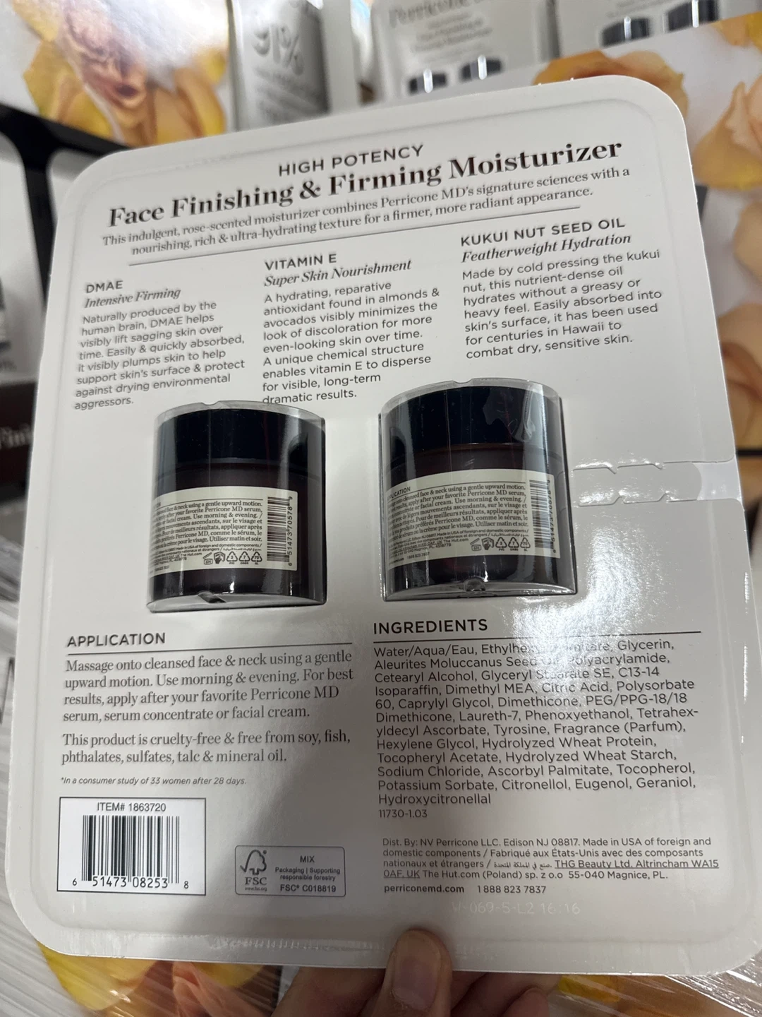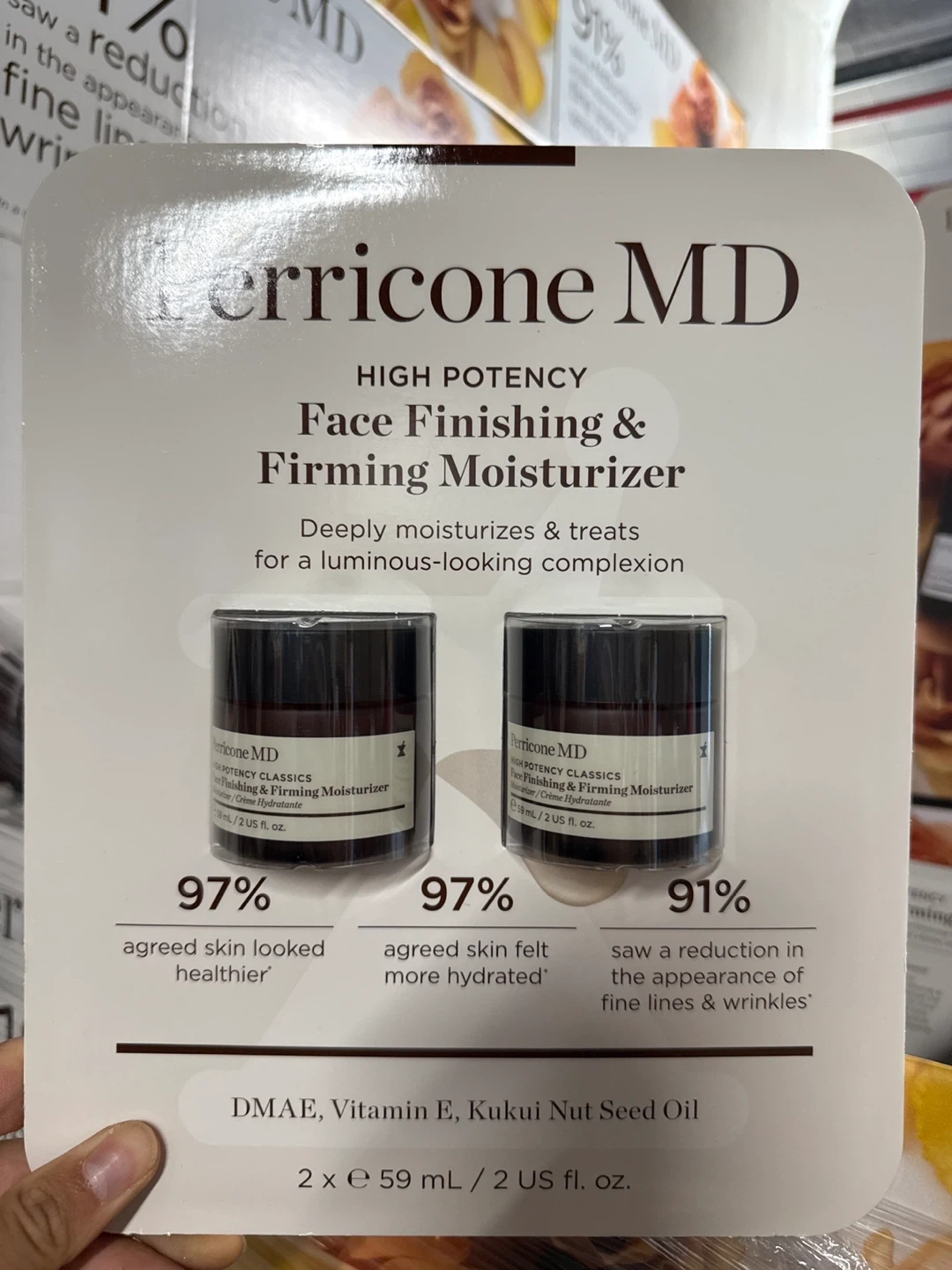 I'm selling Perricone MD's High Potency Face Finishing & Firming Moisturizer. This moisturizer deeply moisturizes and treats for a luminous-looking complexion. It contains DMAE, Vitamin E, and Kukui Nut Seed Oil. Each jar contains 59 mL / 2 US fl oz, totaling 2 x 59 mL / 2 US fl oz