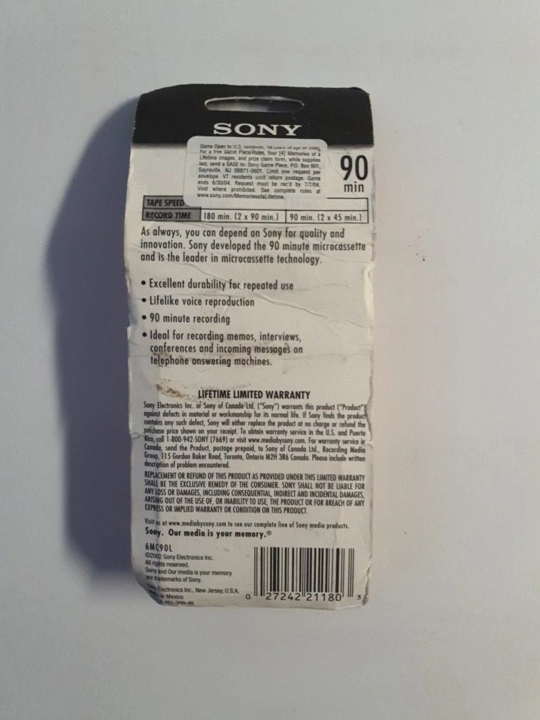 10Vintage sealed Sony mc 90 Micro cassette tapes 6 pack 90 minutes tapes sealed but package slightly worn Model: 6MC90L Type: MICROCASSETTES Brand: sony