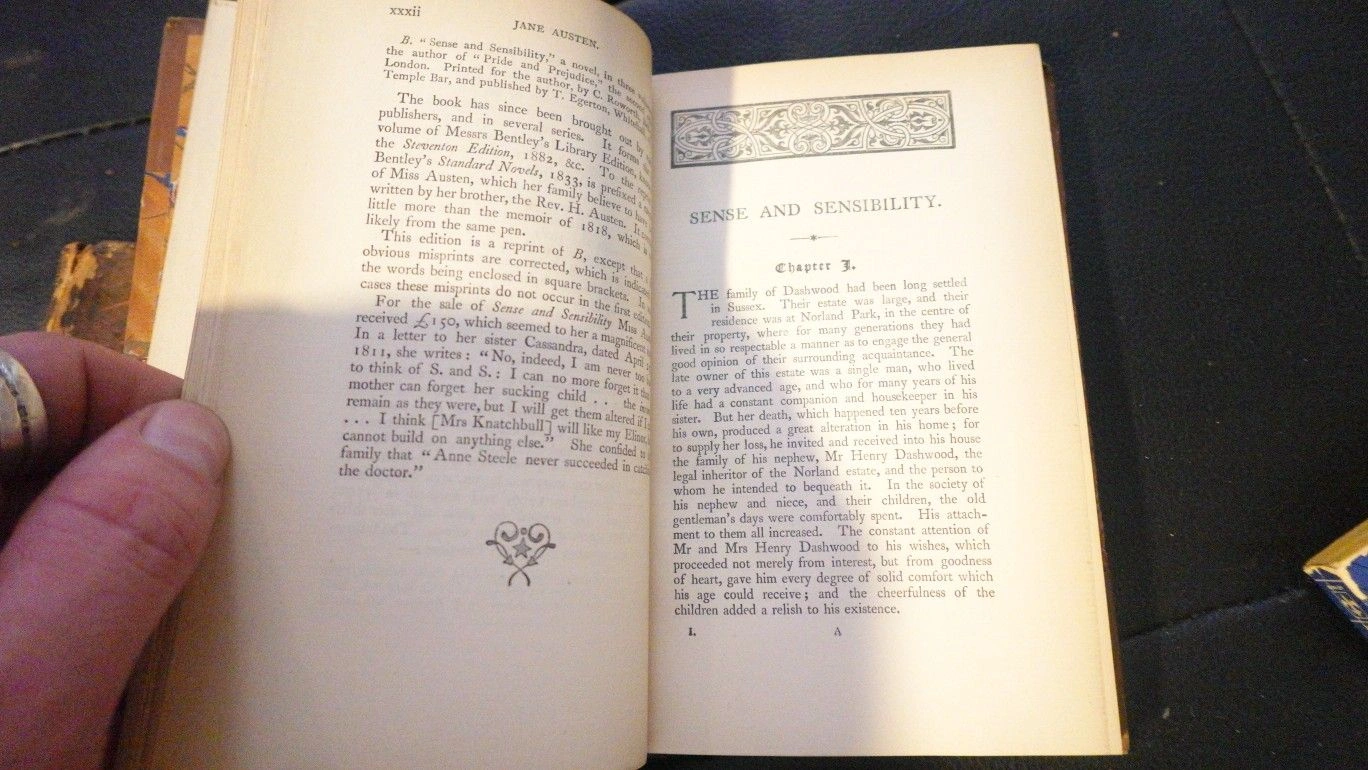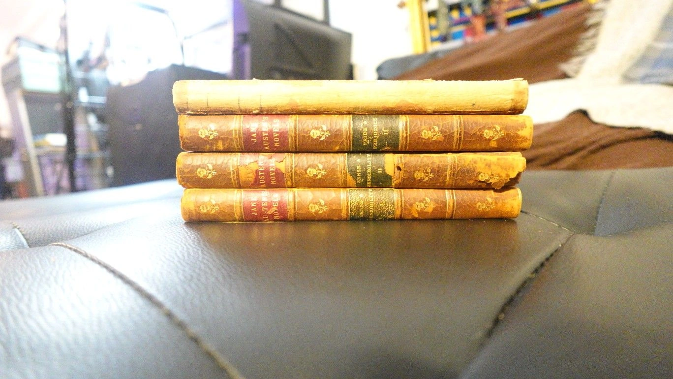 Step back in time with this beautiful, genuine antique four-volume set of Jane Austen's most beloved novels, Pride and Prejudice and Sense and Sensibility. Published in London in 1892 by the renowned J.M. Dent and Company, this collection is a stunning example of late-Victorian bookmaking. This charming set features handsome half-leather bindings with vibrant, colorful marbled boards. The spines are elegantly decorated with gilt tooling, featuring title labels and a delicate floral motif, making them a gorgeous decorative accent for any library, office, or living space. As part of the 10-volume series edited by R. Brimley Johnson, these books represent a significant and collectible edition of Austen's works. This 4-Volume Set Includes: Pride and Prejudice - Volume I Pride and Prejudice - Volume II Sense and Sensibility - Volume I Sense and Sensibility - Volume II ≈===========================÷ Publication Details: Author: Jane Austen Publisher: J.M. Dent and Company, at Aldine House, London Year of Publication: 1892 (MDCCCXCII) Binding: Half Leather with Marbled Paper Boards Special Features: Illustrated, Decorative Title Pages Condition: These books are in good antique condition, showing the authentic character and charm of a collection that is over 130 years old. Bindings: The bindings are holding well. Covers: There is general and expected shelfwear, including rubbing to the leather spines and board edges. Spines: One spine has a noticeable chip at the top (please see photos for detail). The gilt remains fairly bright. Pages: The interior pages are in good condition for their age, with some natural tanning. This is a perfect acquisition for any Jane Austen collector, bibliophile, or anyone looking to own a tangible piece of literary history. Display them on your shelf to add a touch of authentic Victorian elegance to your home decor.