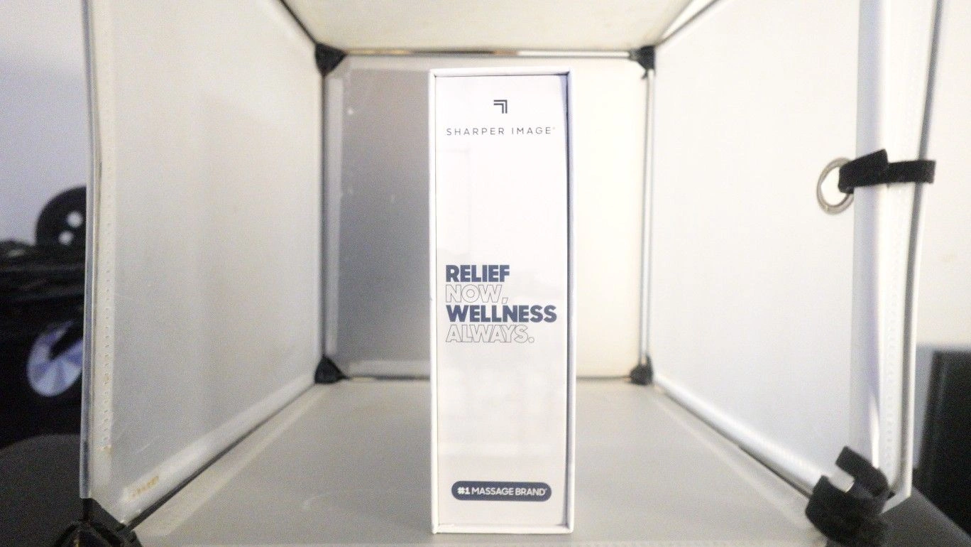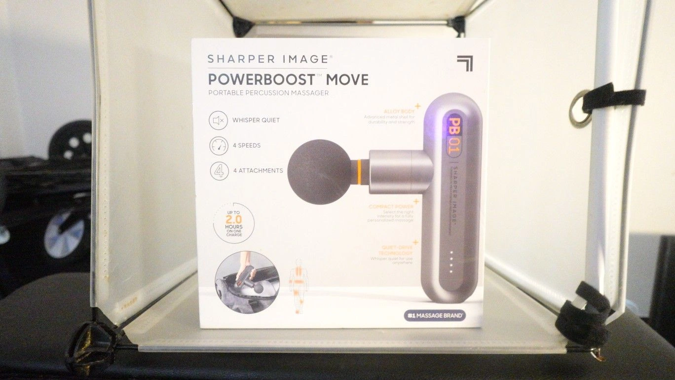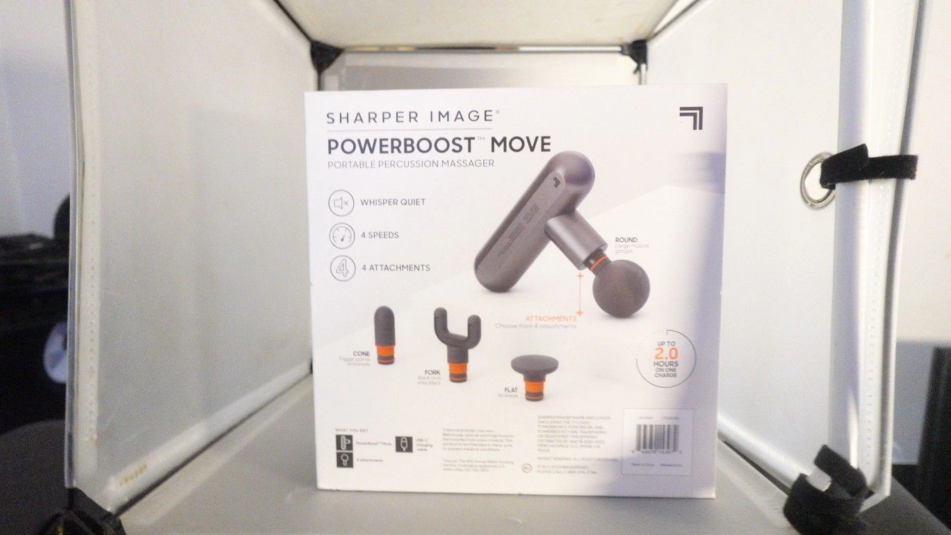 17Open box. Gently used massage gun by Shaper Image. Rechargeable battery. Color: Black. Type: Percussion massage therapy. Brand: Sharper Image