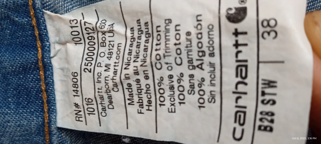 Selling a pair of Carhartt B28 STW jeans in size 38. They are made of 100% cotton. if you want it you have to come to me Cash only