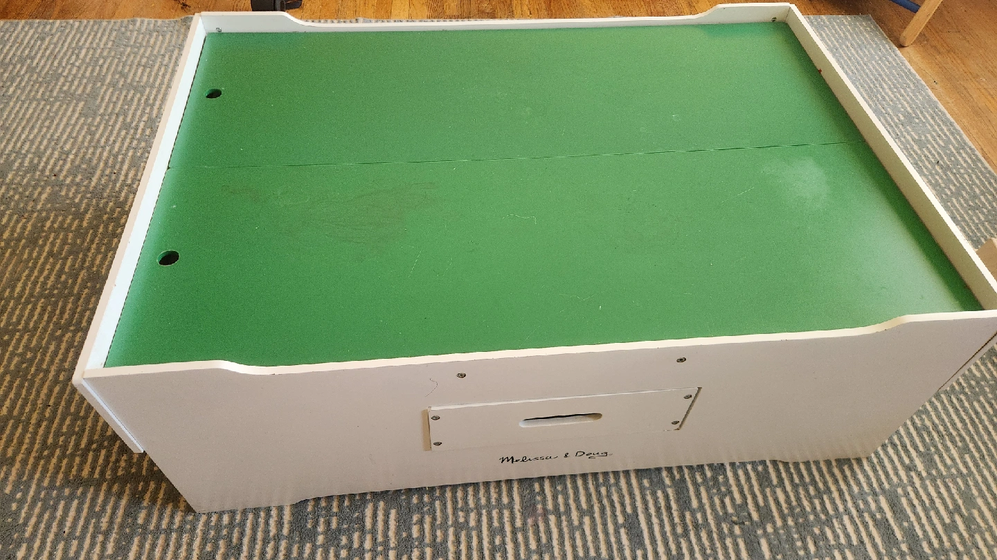 26Selling a Melissa & Doug activity table. It features a white frame with a green play surface. Perfect for kids' activities and playtime!