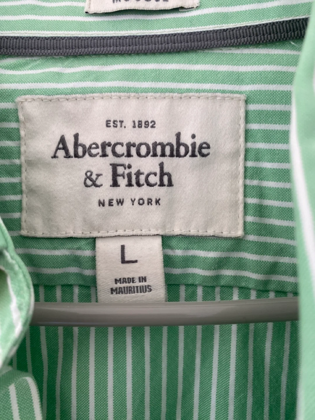 284Selling a gently used Abercrombie & Fitch button-down shirt. It's a light green and white striped pattern and in great condition. Size is a men's large. Perfect for a casual or semi-formal look!
