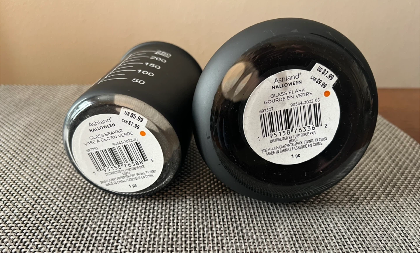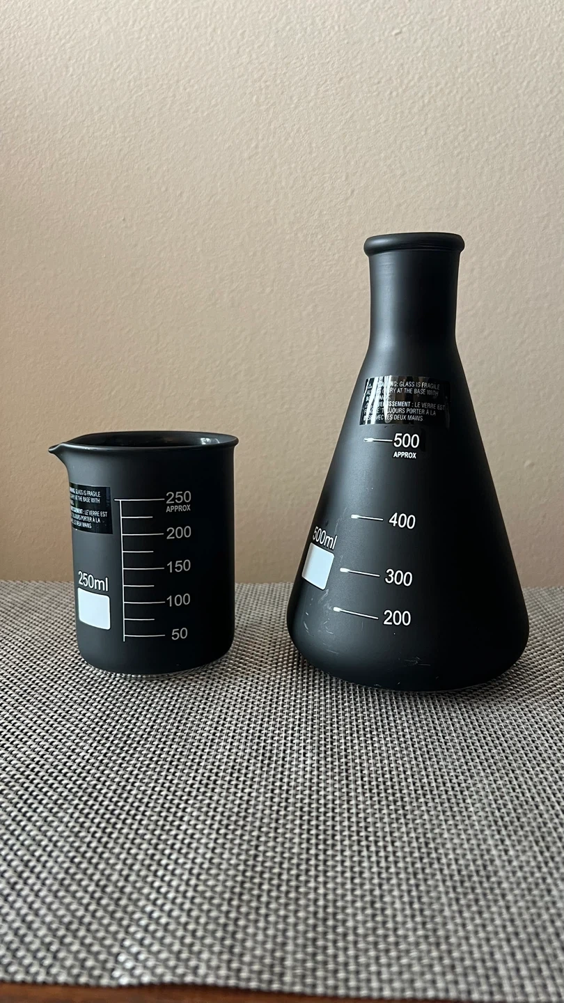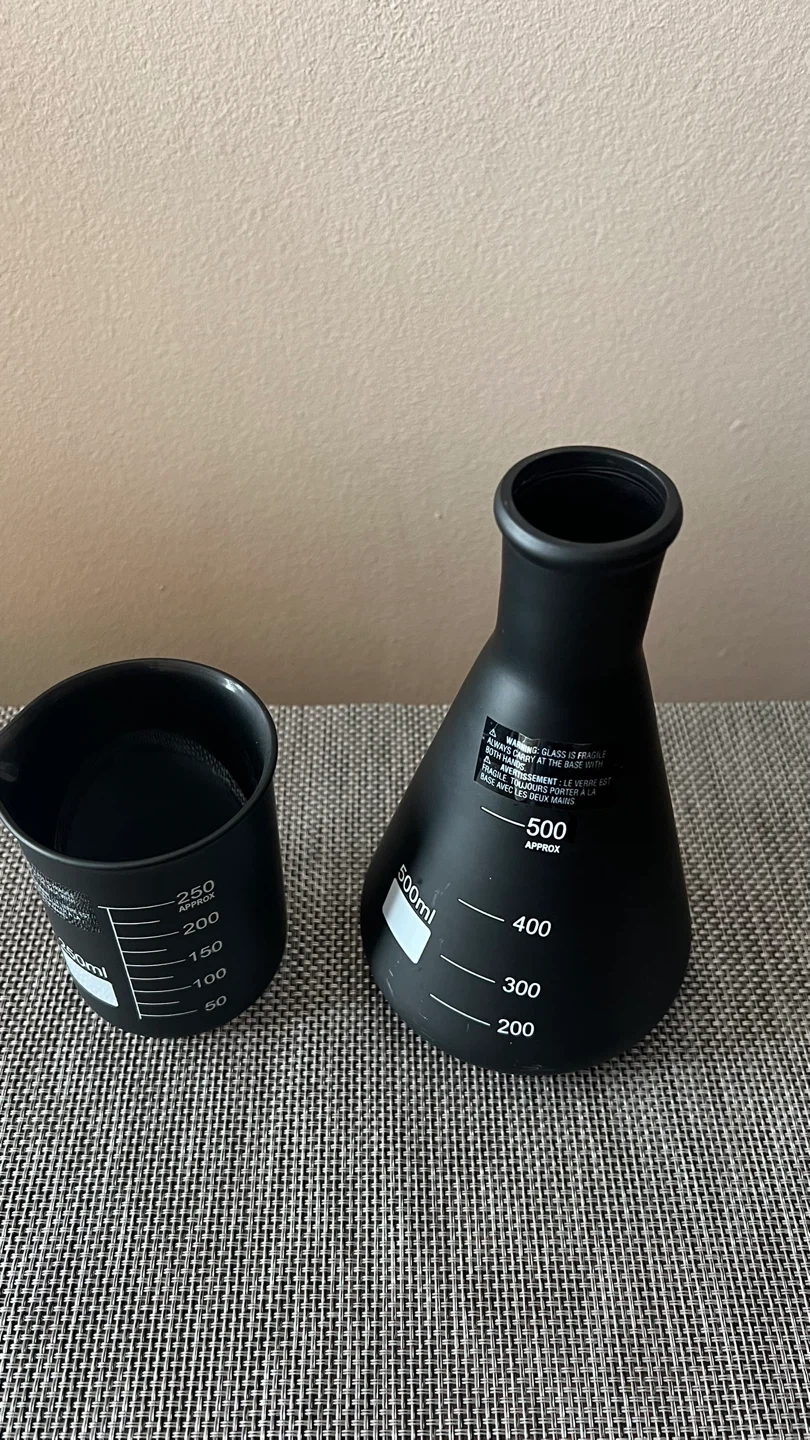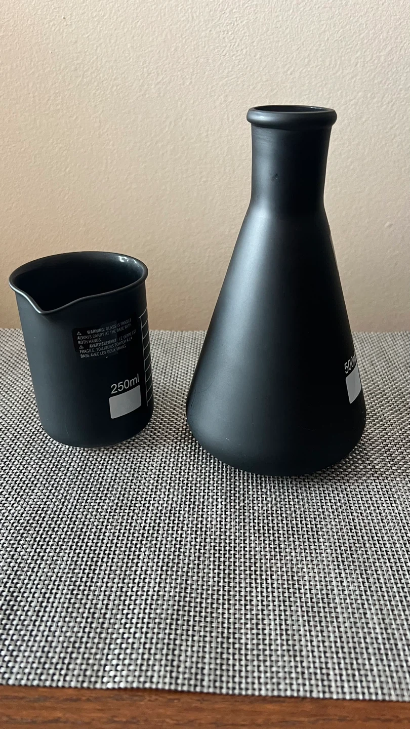 New/Unused - Purchased for $14+tax. Black decorative glass beaker and flask set. Perfect for Halloween party decor - use for a centerpiece, on a mantle, entryway, or anywhere to add a little spookiness to your home! Flask is 3” H x 2 7/8” D Beaker is 7” H x 4” D (base) Pick up only near Astoria Park, Queens NYC 11102 Cash (preferred) or Venmo only for payment Check out my other listings!