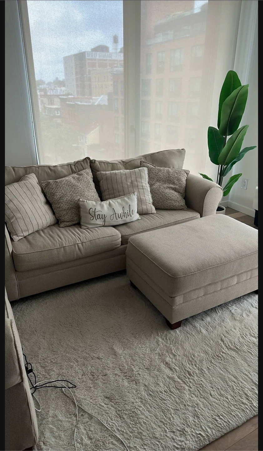 Selling a comfortable beige sofa with an ottoman and matching armchair! The ottoman has a storage compartment, perfect for blankets or pillows. It's a great set to complete your living room. Available for pick up. Thank you