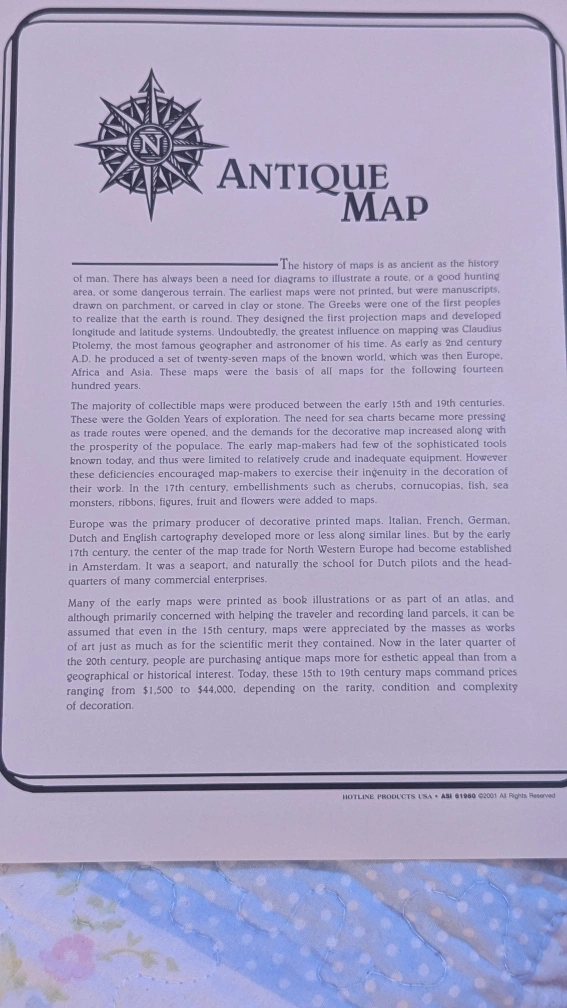 Selling an antique map calendar featuring January 2005. It has a decorative map design and is in good condition. Perfect for collectors or those interested in historical maps🧡