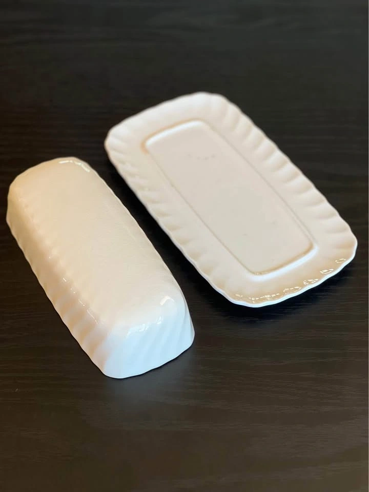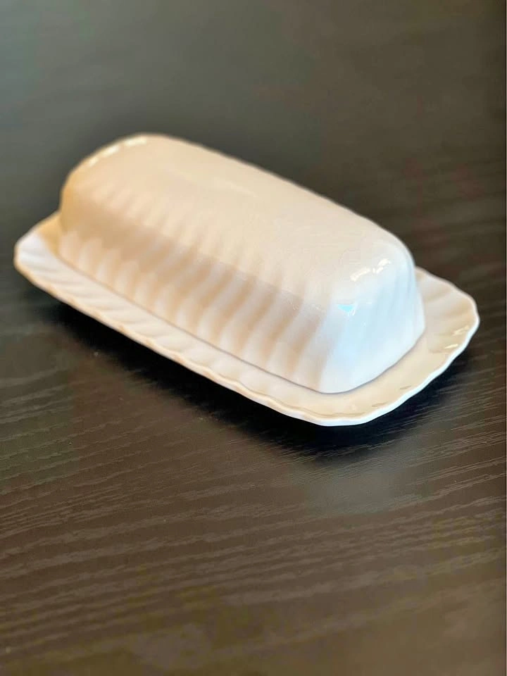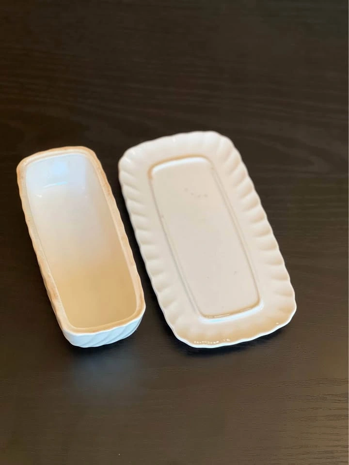 Johnson Brothers Butter Dish Regency Shows age and discoloring as seen in photos 8.25" x 4.50"