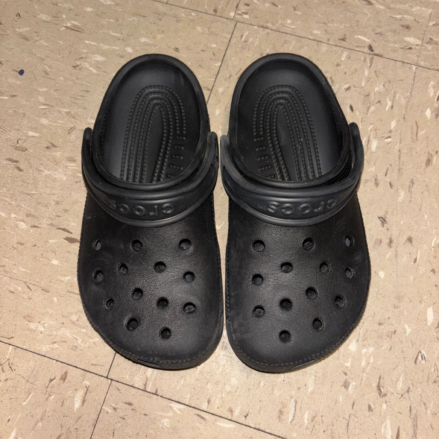 Selling a pair of kids black Crocs clogs in size J1. They're in good condition and ready for a new home! Only worn a few times.
