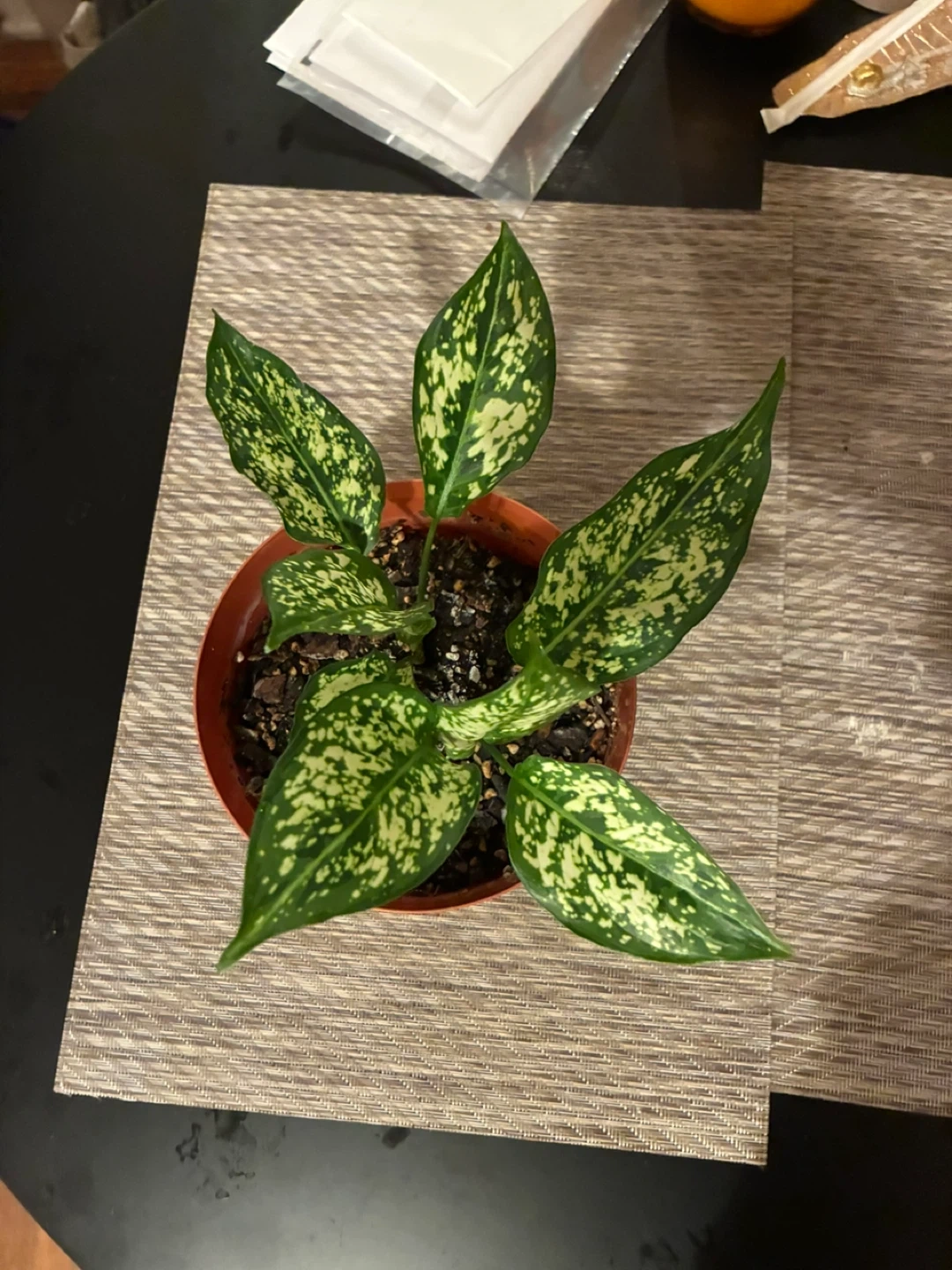 Here's a lovely potted Aglaonema (Snow White) plant, perfect for adding a touch of greenery to your space! 🧡