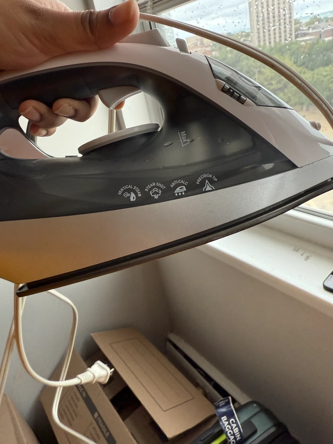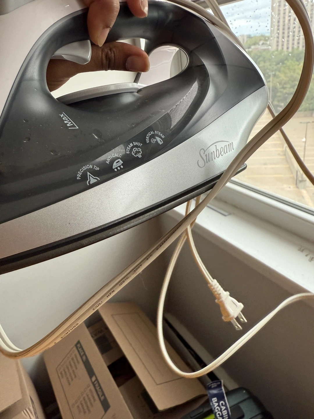 Selling a Sunbeam steam iron. It features precision tip, anti-calc, steam shot, and vertical steam options. It's in good working condition and ready to help you get those wrinkles out