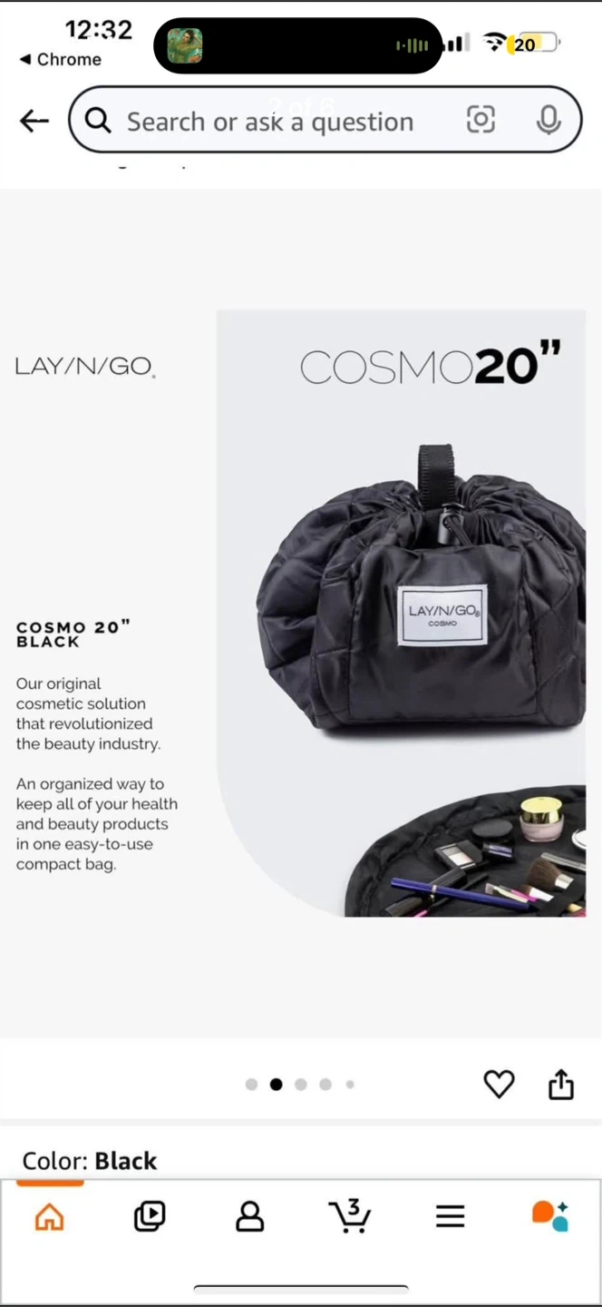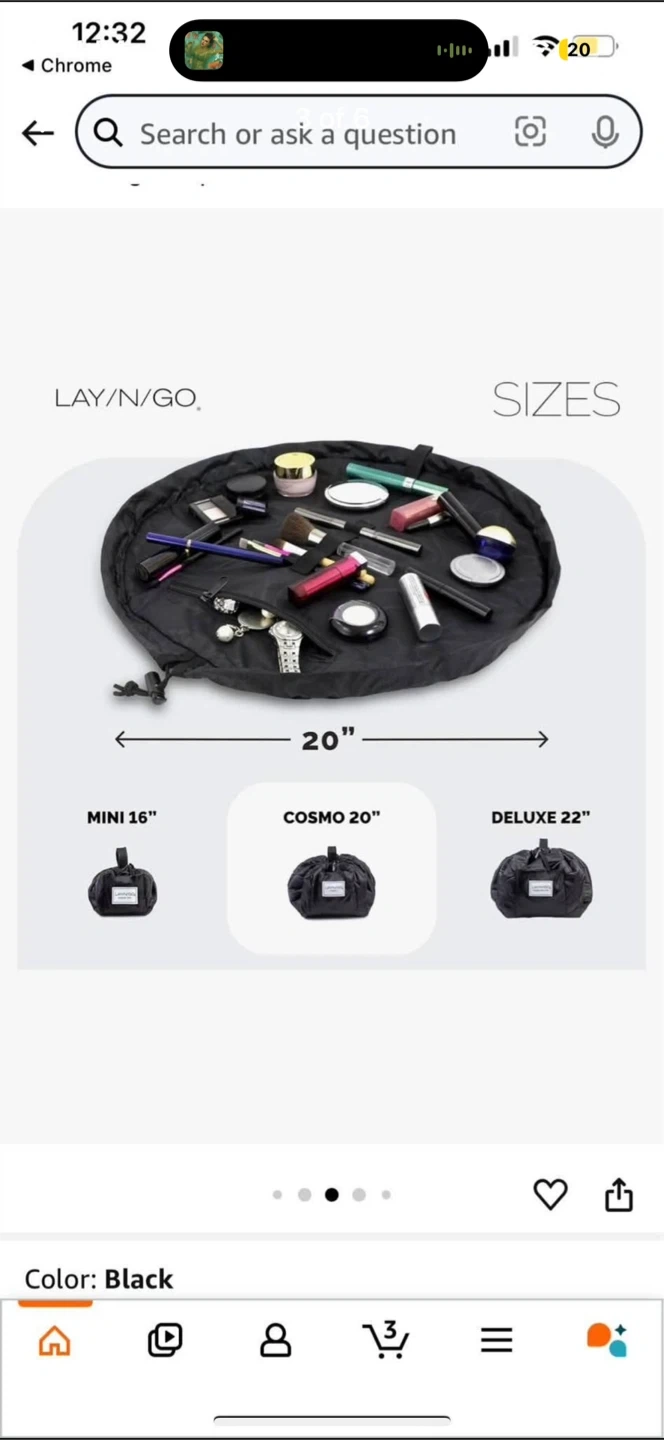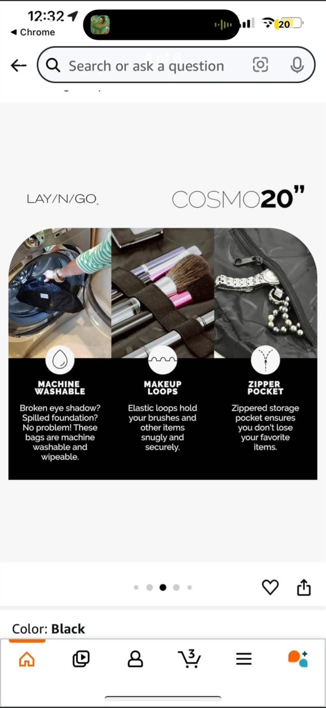 LAY-N-GO COSMO 20" makeup bag in black machine washable and wipeable