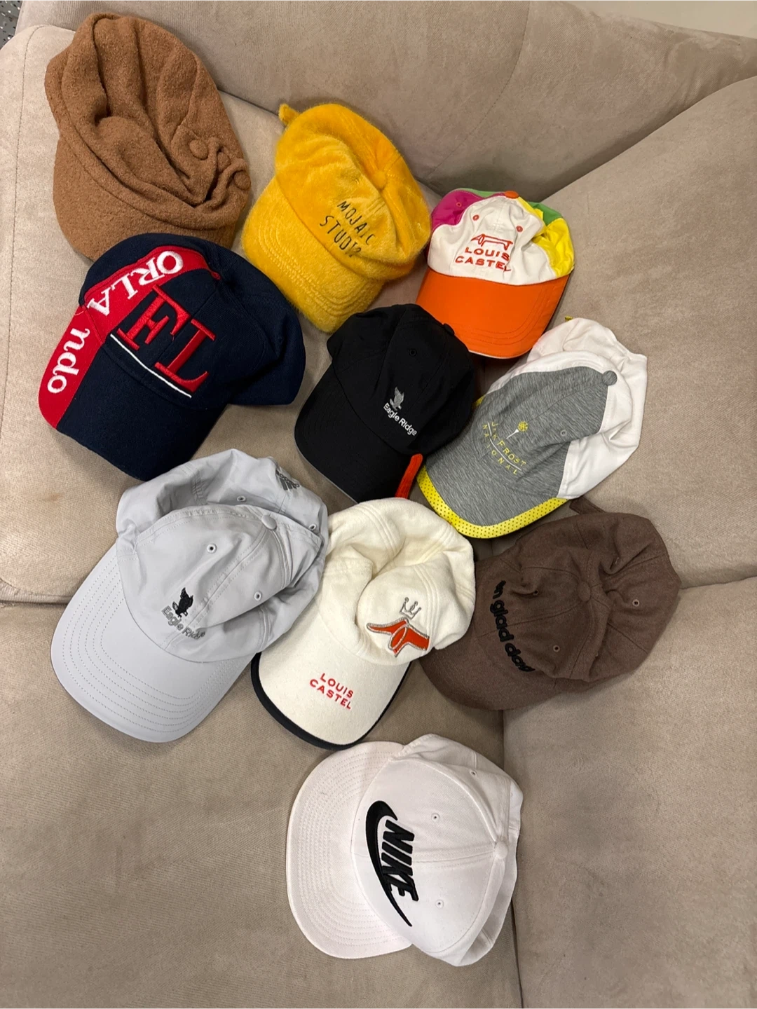 91Selling a collection of assorted hats in various colors and styles. Brands include Nike, Louis Castel, and others. All in good condition and ready for a new home Size fits all 10 hats for $20 Sold as a set