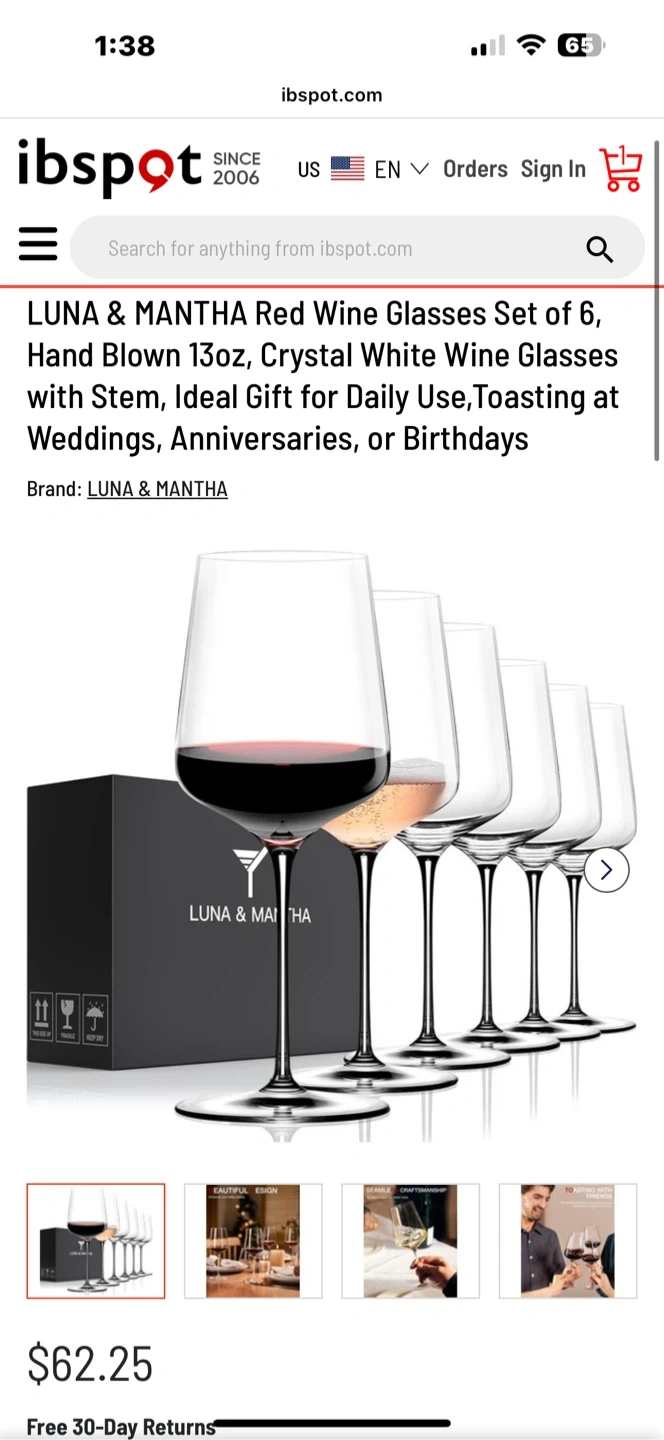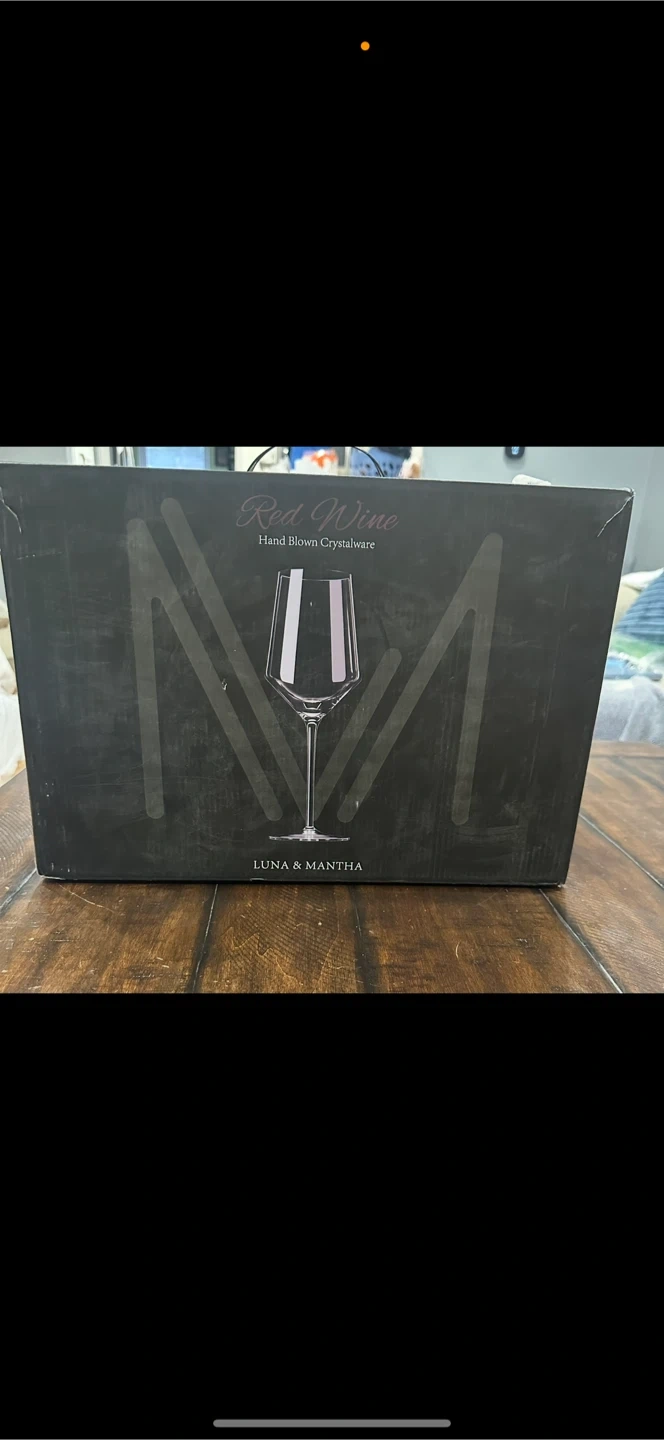 Selling a set of 6 LUNA & MANTHA red wine glasses. They are hand blown, 13oz crystal glasses with stems, perfect for daily use or special occasions. They come in the original box!
