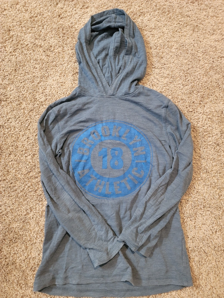 Selling a gray blue Brooklyn Athletics hoodie. It features a blue logo on the front. Great for casual wear!