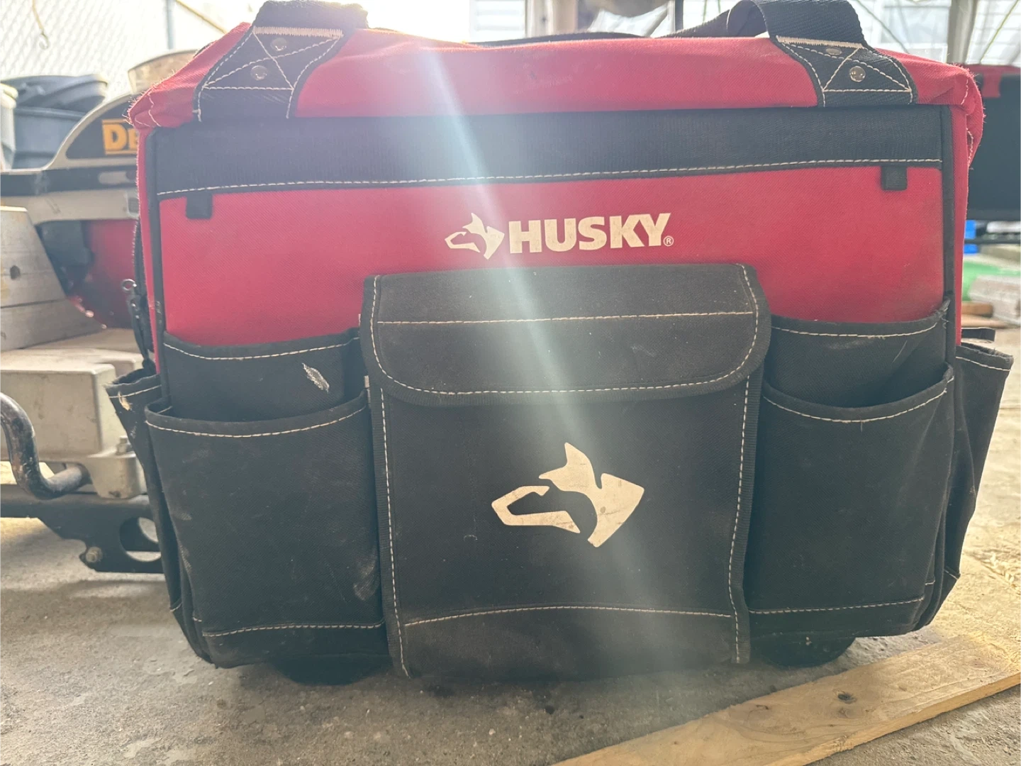 Selling a Husky rolling tool tote bag. It's in used condition, but still has plenty of life left! Great for keeping all your tools organized and easy to transport around the house or job site. The bag features a telescoping handle and smooth rolling wheels for easy maneuverability.
