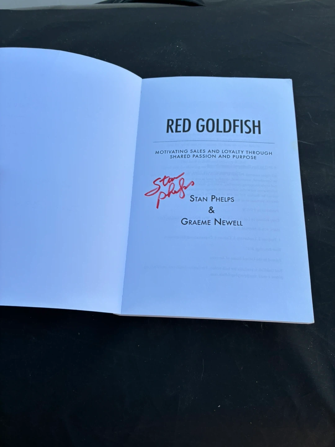 Red Goldfish by Stan Phelps & Graeme Newell Selling the book Red Goldfish, written by Stan Phelps and Graeme Newell. It explores motivating sales and loyalty through shared passion and purpose. A great read for business and marketing enthusiasts! Pick up in Norridge Price $5