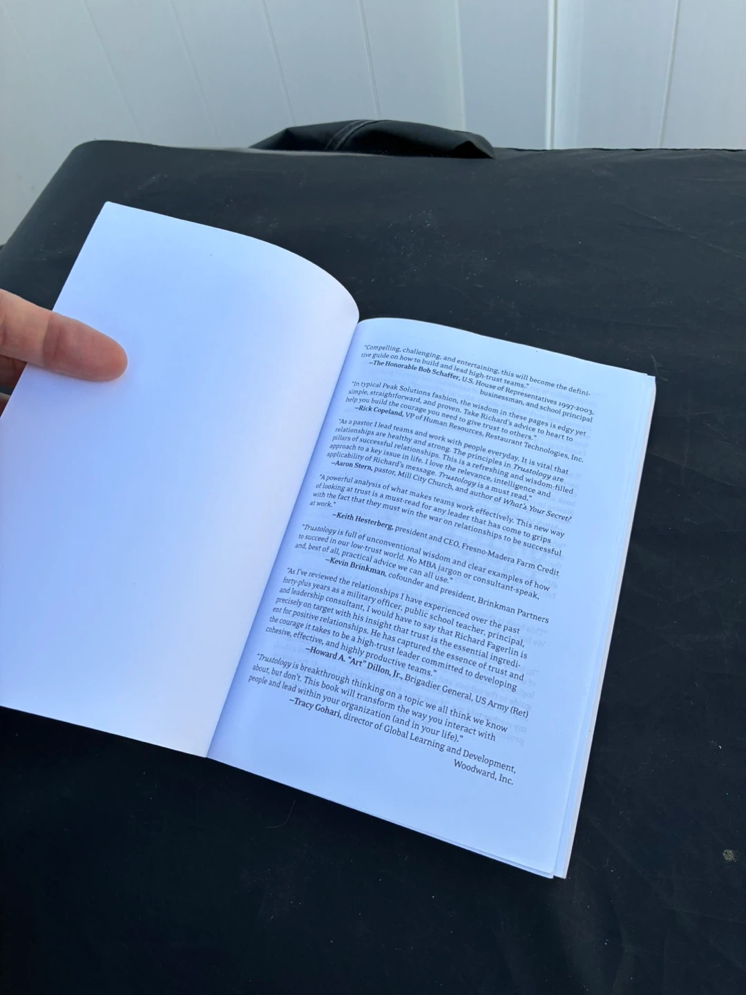 Book: Trust-ology by Richard Fagerlin Selling the book Trust-ology by Richard Fagerlin. It's all about the art and science of leading high-trust teams. If you are interested in learning about building trust, this is the book for you Pick up in Norridge Price $ 5