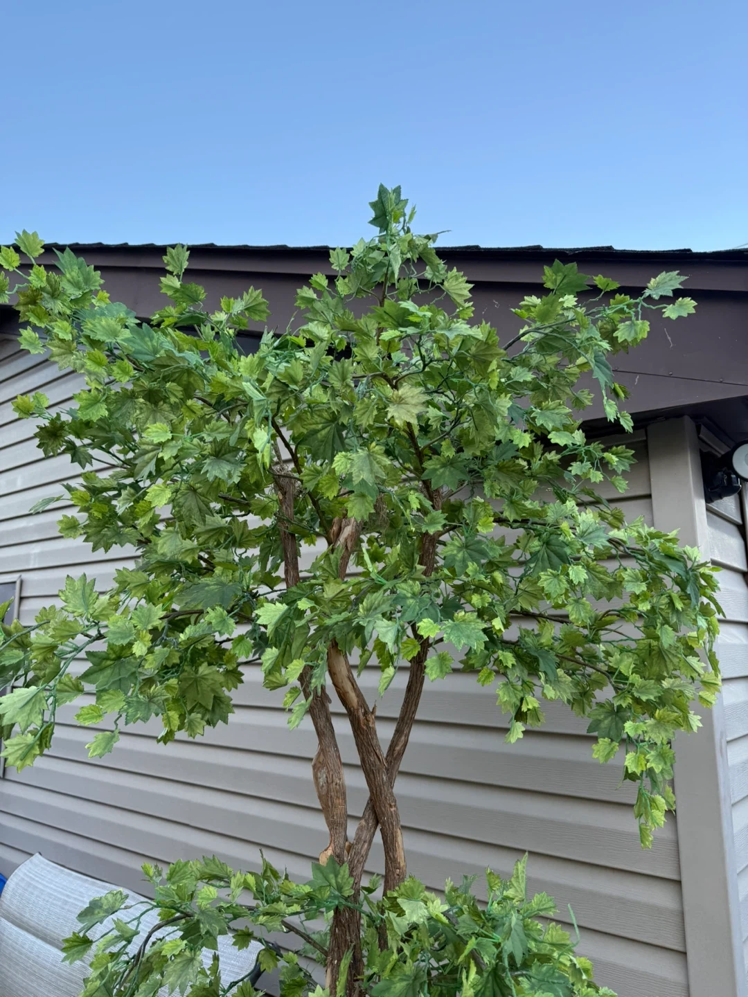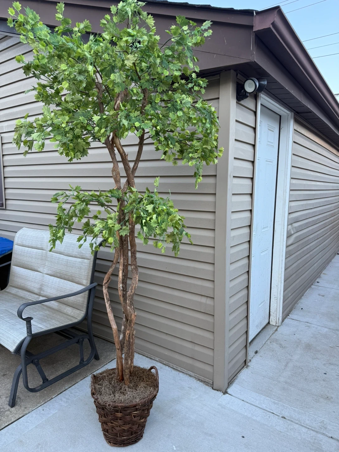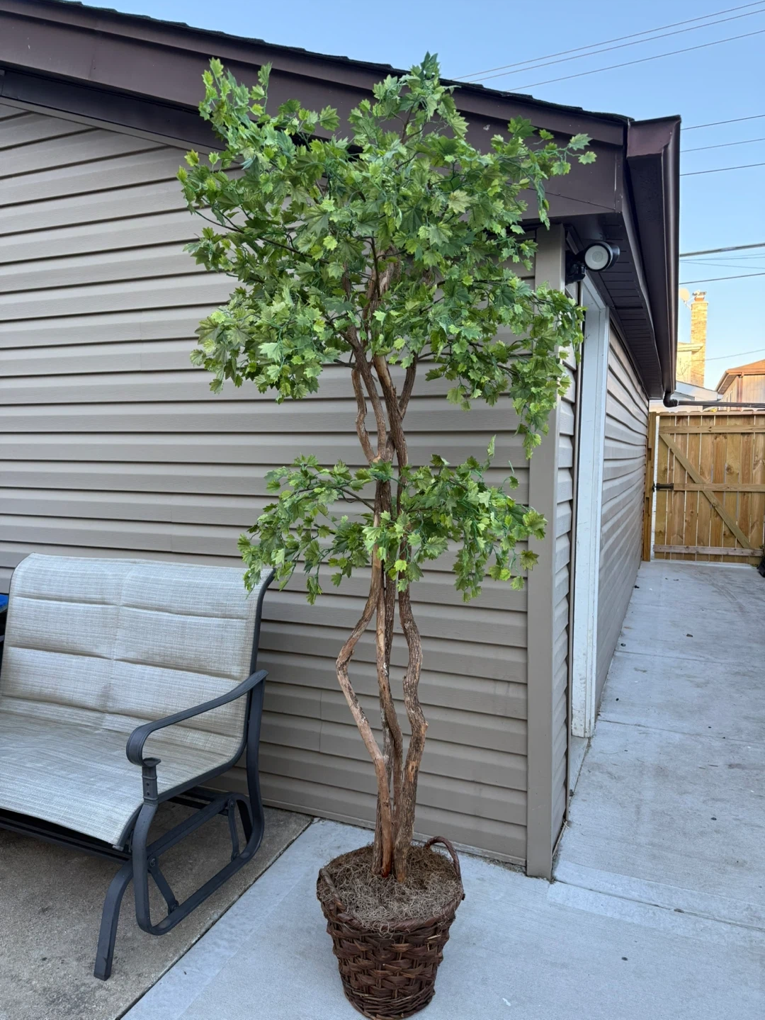 I'm selling a beautiful artificial maple tree in a basket! It stands about 6 feet tall, perfect for adding a touch of greenery to your home or patio without the upkeep. The basket adds a nice decorative touch too