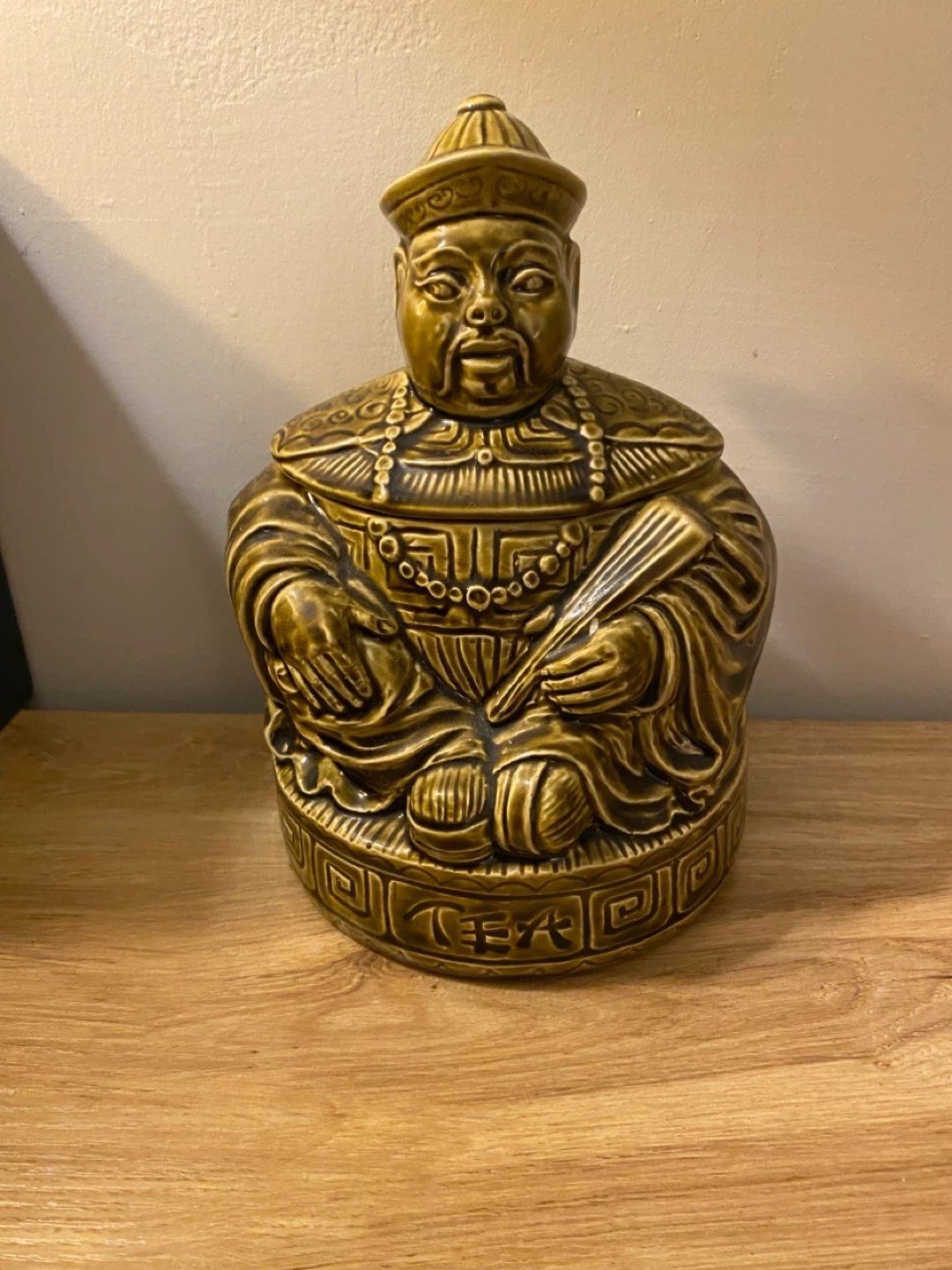284Selling a vintage ceramic tea jar shaped like an Asian man. It's a unique piece that could be a fun addition to your kitchen or collection! The jar is in good condition. James Sadlers made in England around 1960/70s