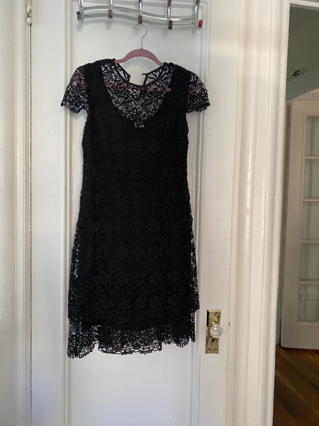 Selling a beautiful Anne Klein black lace dress. It's in great condition and perfect for any occasion. The intricate lace detailing adds a touch of elegance to the classic black color.