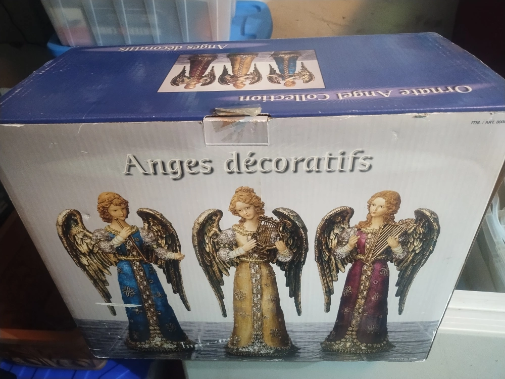 Selling an Ornate Angel Collection called Anges Décoratifs, which includes three decorative angels! The set comes in its original box in good condition putout just one year for display. if you like more pictures please just ask. I'm selling it for my mother. she didn't want to unbox it all but they're all completely in tact and nicey nice
