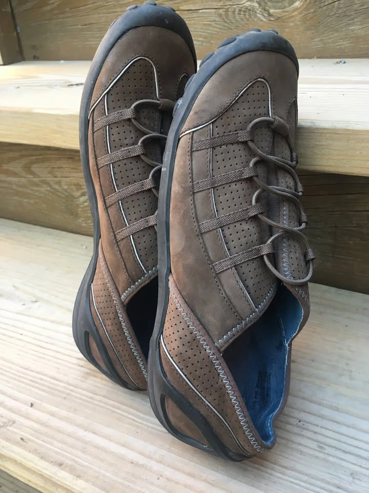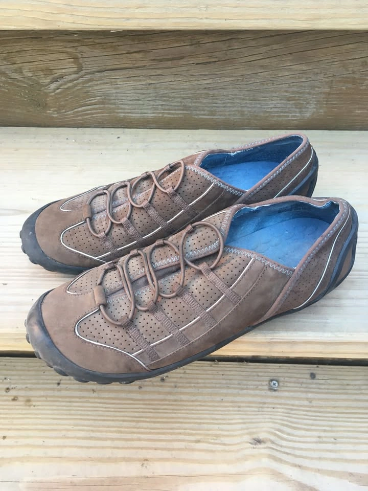 Women's Privo Brown Nubuck Leather Elastic Slip Ons Size 9.5 - Excellent Condition These were worn two times, and are very clean and in excellent condition. Removable padded liners for extra comfort and easy cleaning. Bottom soles have no obvious wear. These were over 100.00 new. Model 75332. From a smoke and pet free home. Check out in person before purchasing. Thanks for looking.