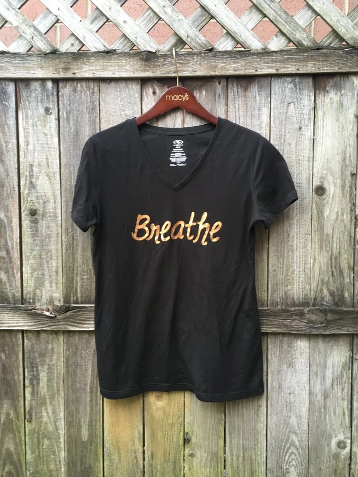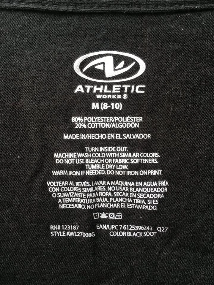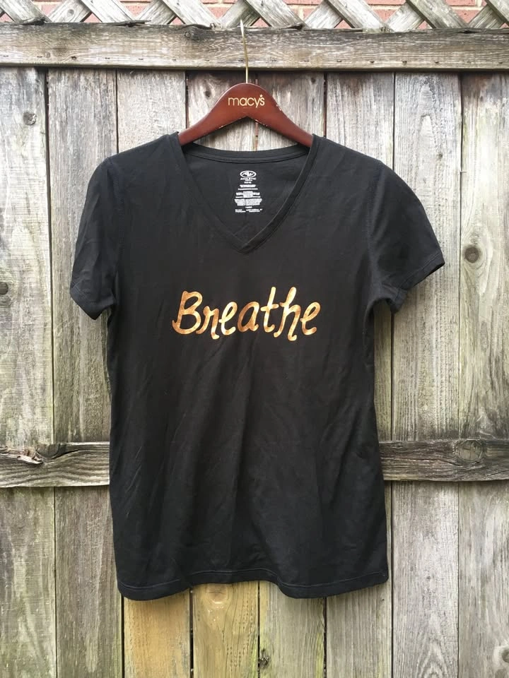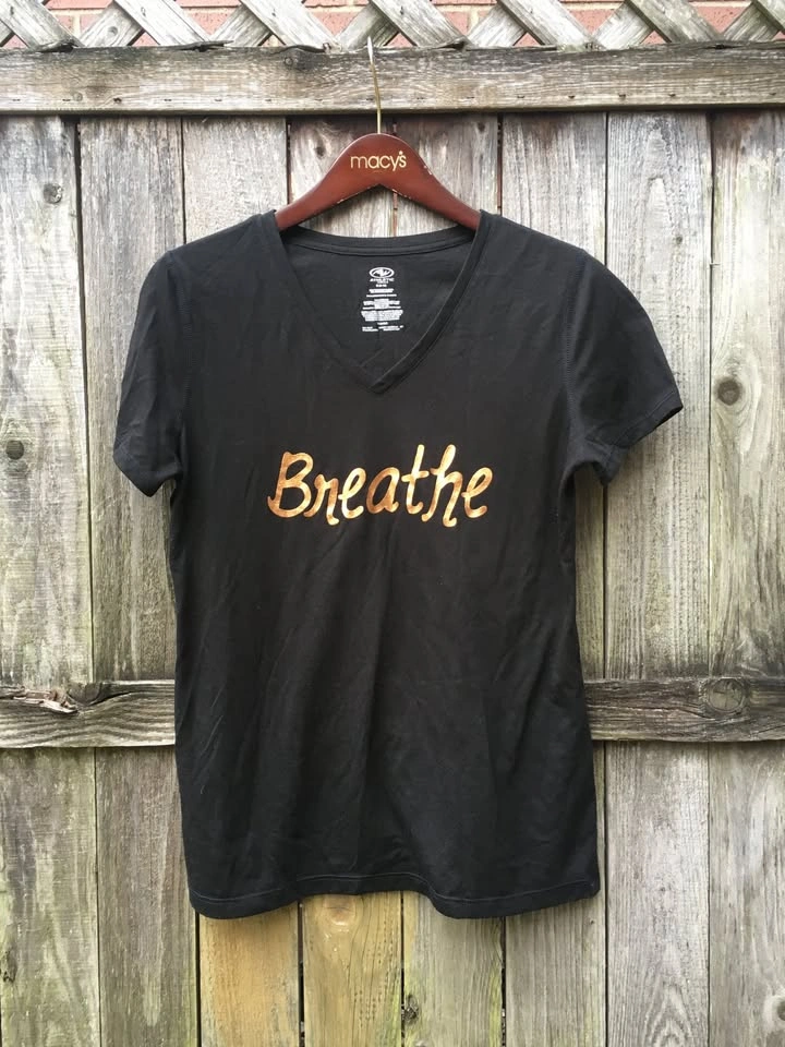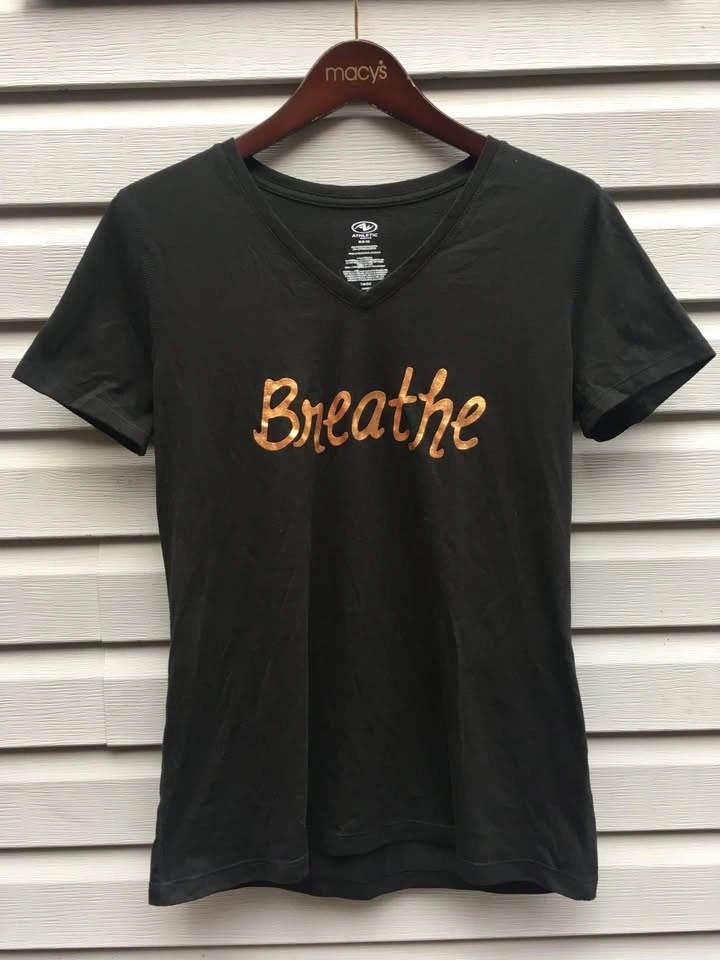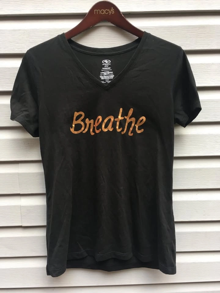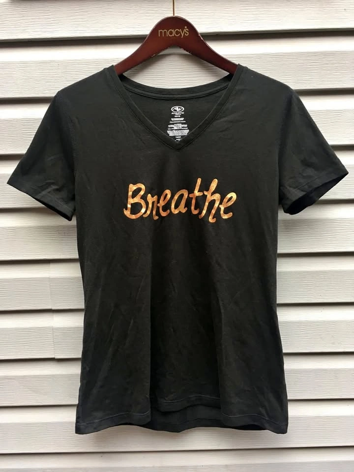 Athletic Works Breathe T-Shirt Size M (8-10) - Like New The word Breathe on the front of shirt is in gold sparkle letters and measures 9” wide. Measures approx. 16” across the chest when shirt is laid flat. Made of 80% polyester and 20% cotton. From a smoke and pet free home. Check out in person before purchasing. Thanks for looking.