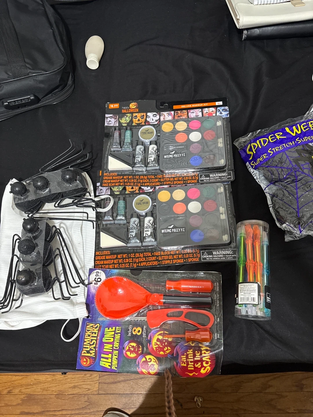 Selling a Halloween makeup kit and a pumpkin carving set. Both are perfect for getting into the spooky spirit! The makeup kit includes grease makeup, fake blood, and applicators. The pumpkin carving kit comes with 8 patterns and various tools for creating your own jack-o'-lantern