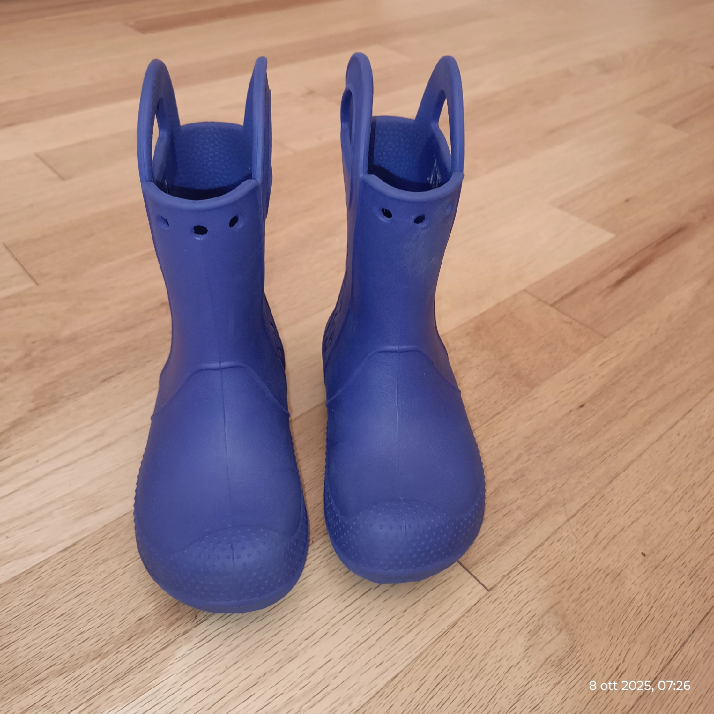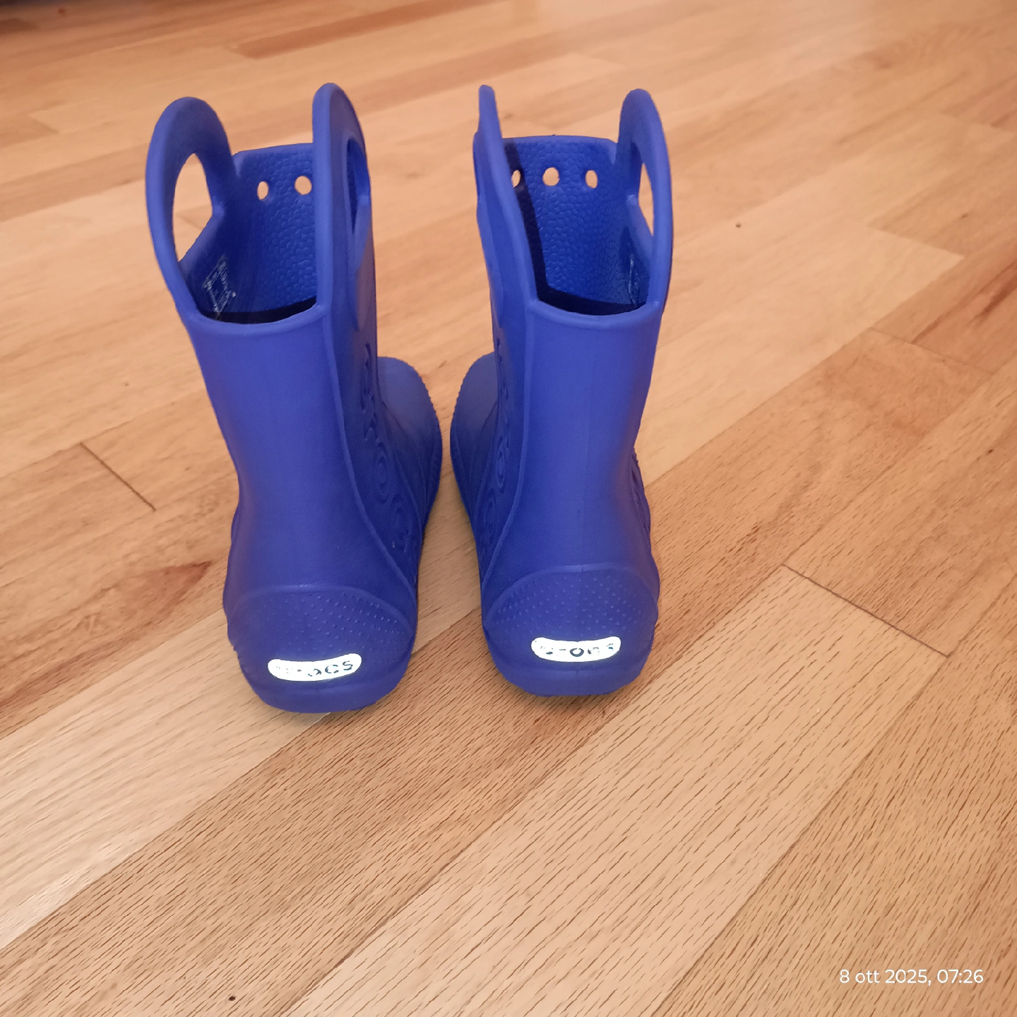 These blue Crocs Handle It rain boots are perfect for keeping your little one's feet dry! They feature the classic Crocs comfort and a handy handle for easy on and off. Size 12. worn very few times!!