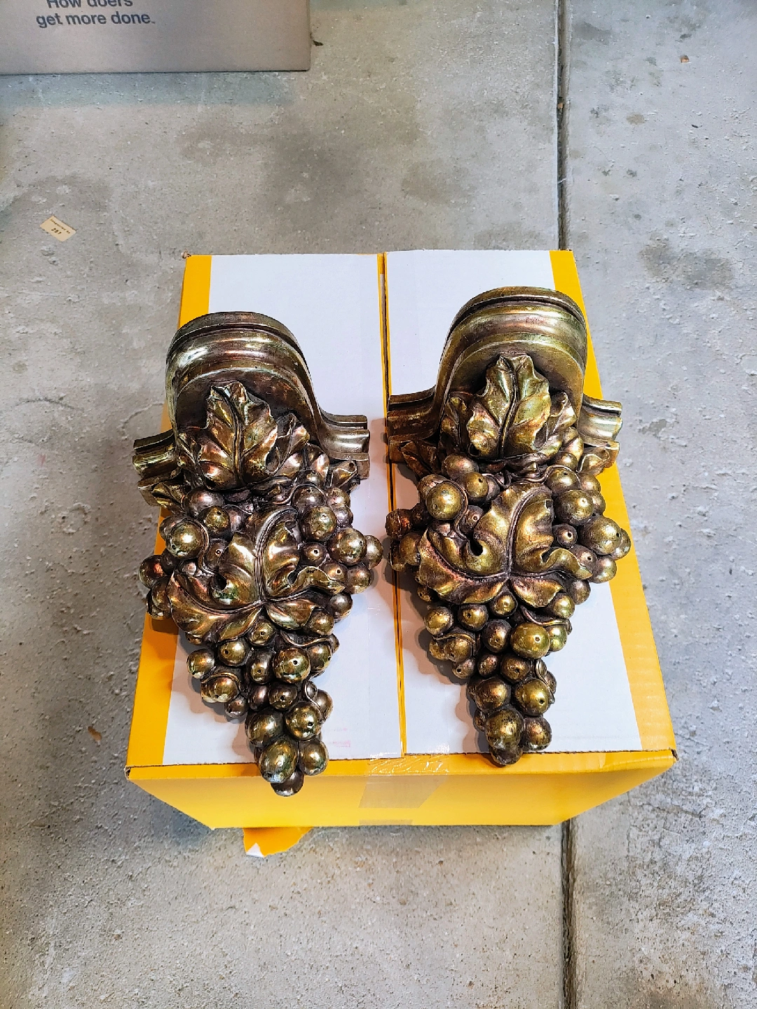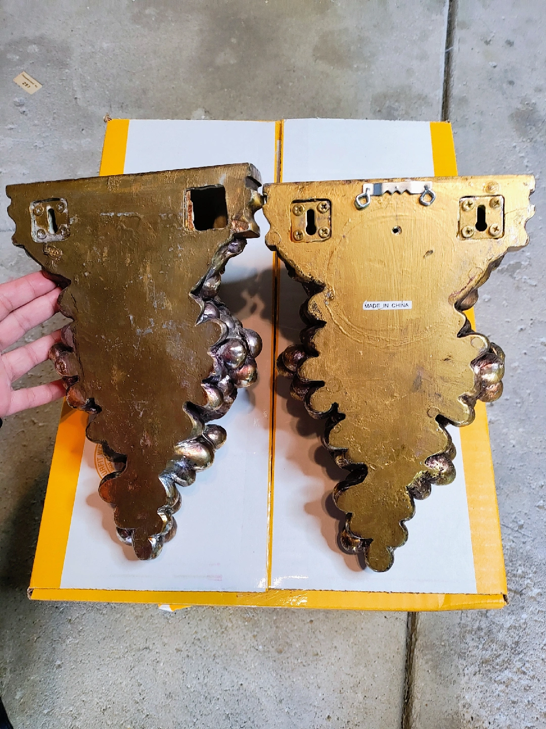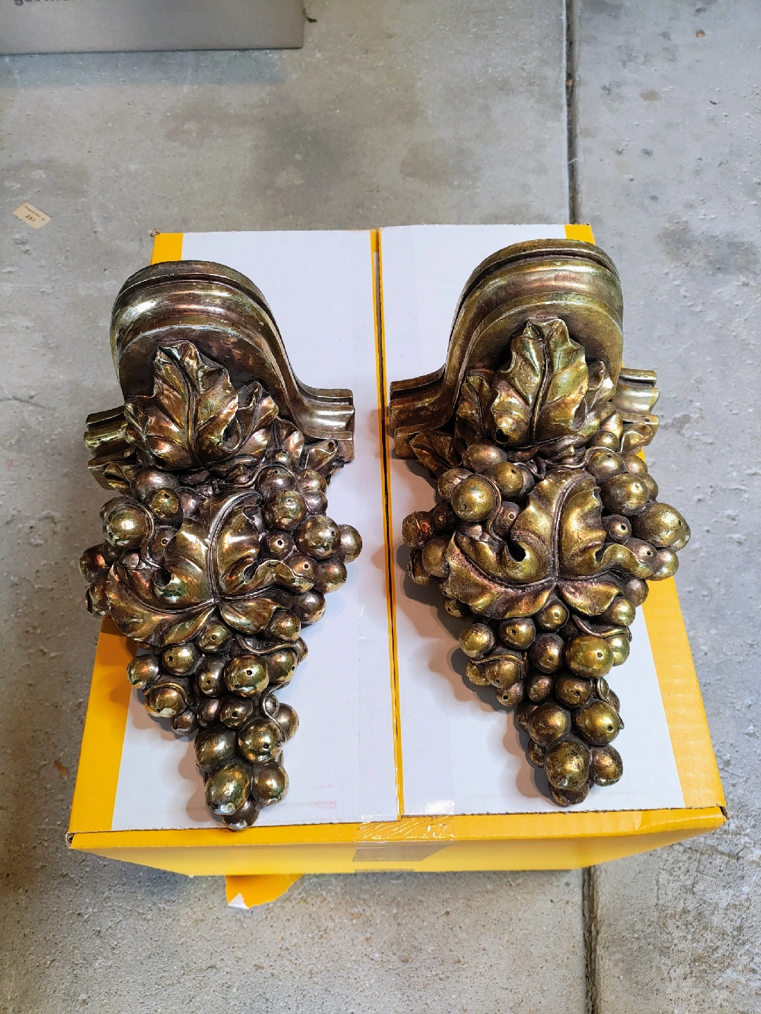 10Selling a pair of vintage gold grape wall sconces! Each sconce is approximately 11 inches tall and 7 inches wide.
