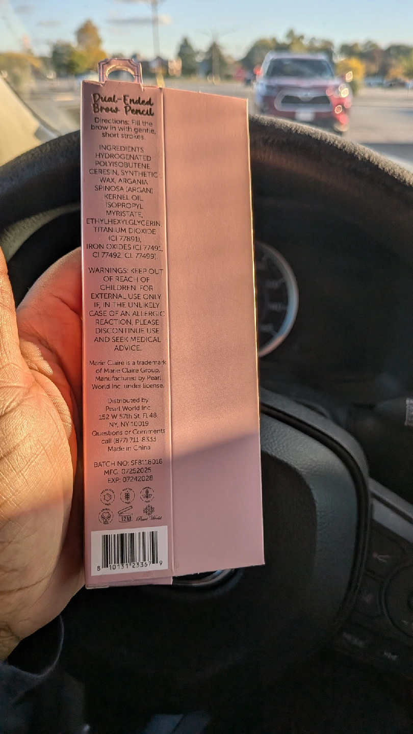 I'm selling a Marie Claire Dual-Ended Brow Pencil in Medium Brown. It's brand new and comes in its original packaging. Net weight: 0.2g/0.01 oz. The expiration date is 2028 April 20.