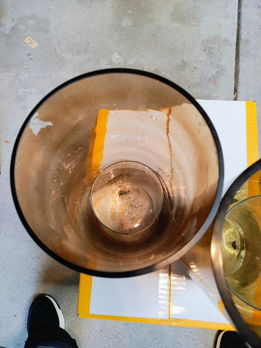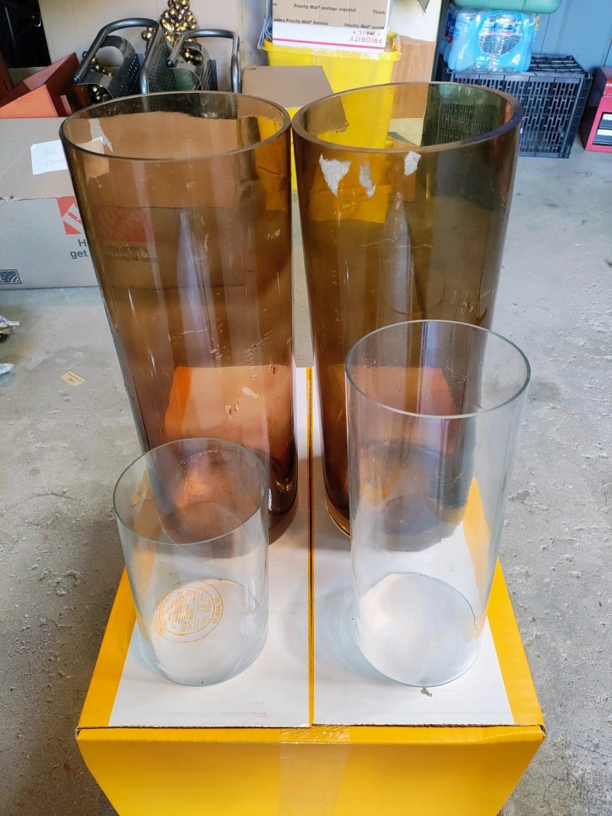 10Selling a set of brown glass vases! They have a unique and stylish design that would look great in any home. Perfect for displaying flowers. They are scratched up