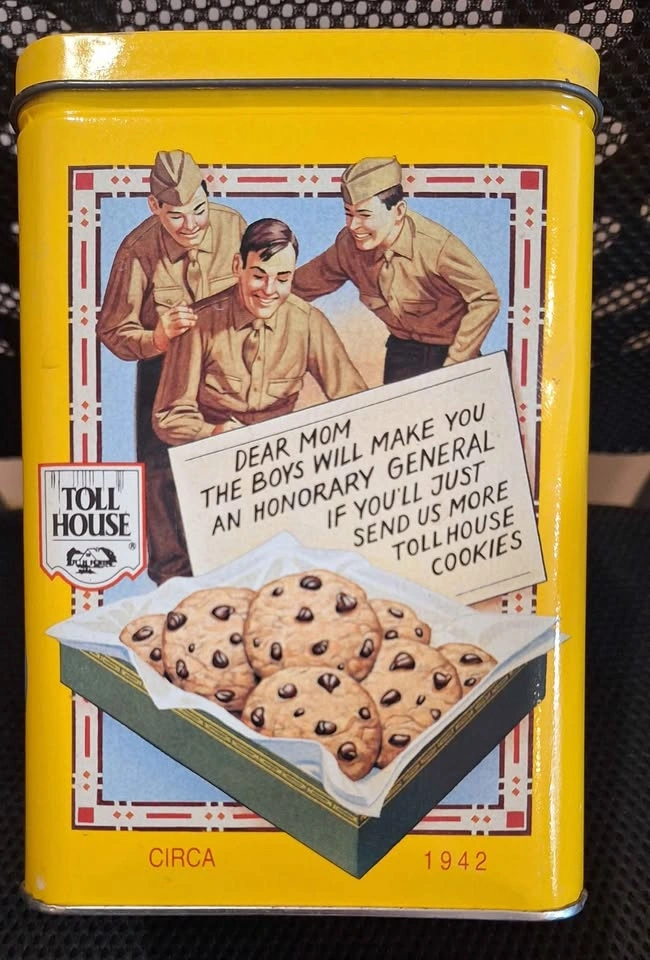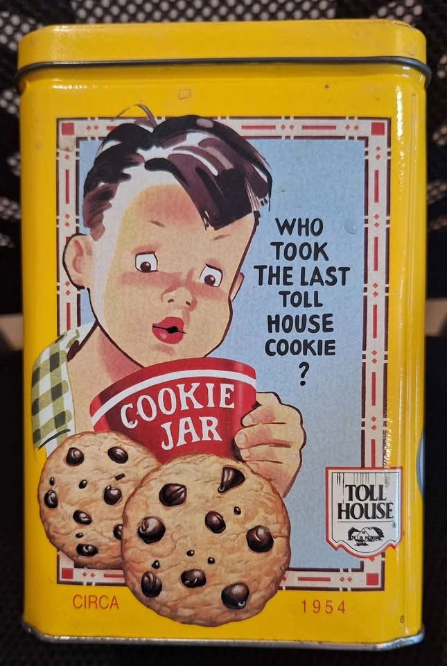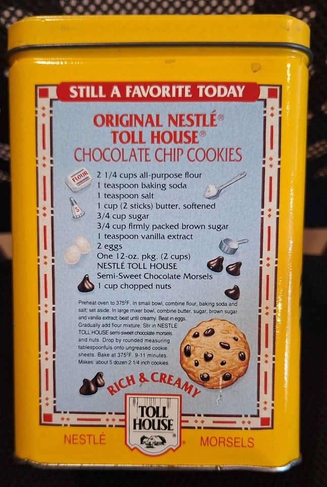 Nestle Toll House Cookies Collector Yellow Metal Tin 1939 1942 1954 Vintage size 6.5" x 4.24"