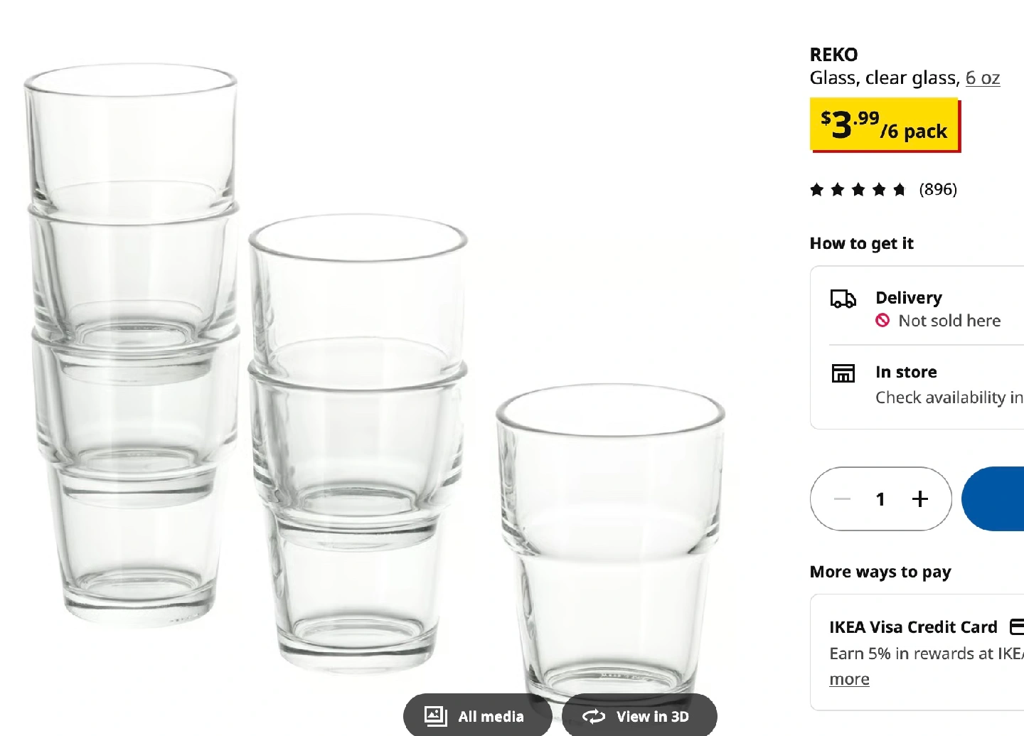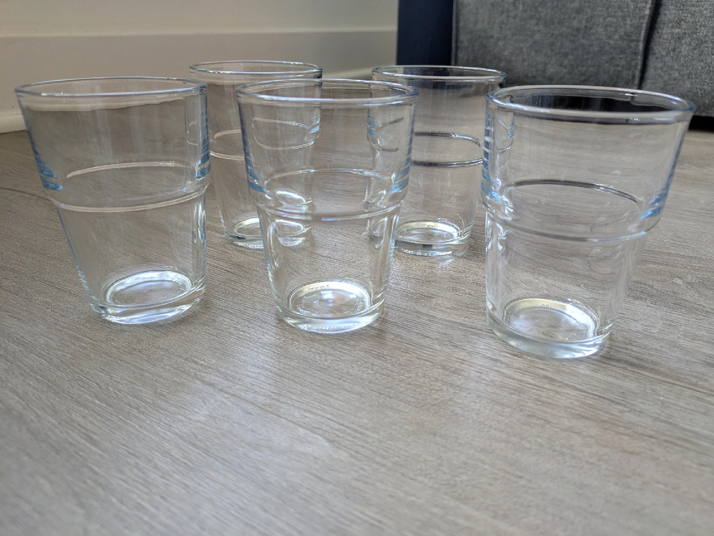 Selling a set of 5 IKEA REKO glasses. They are clear glass and each holds 6 oz. Also have 6 FARGRIK mugs in another ad. Selling because we are relocating. We're going to need to get rid of a lot of stuff in the next few weeks so please check out my other listings 😊 More coming soon!