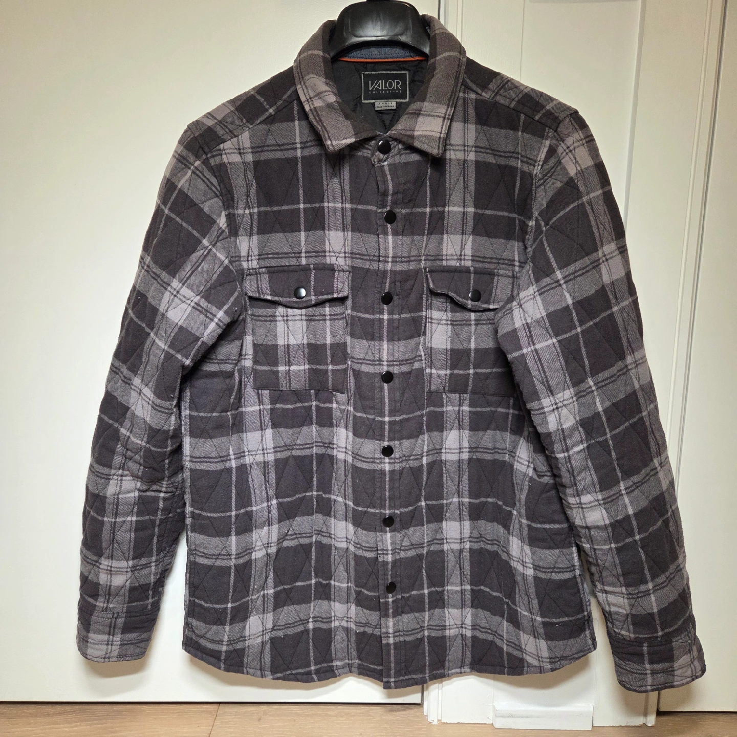 76Selling a Valor Collective quilted jacket in a gray and black plaid pattern. It's a size large and in great condition! The jacket has a button-up front and two chest pockets. Perfect for layering!