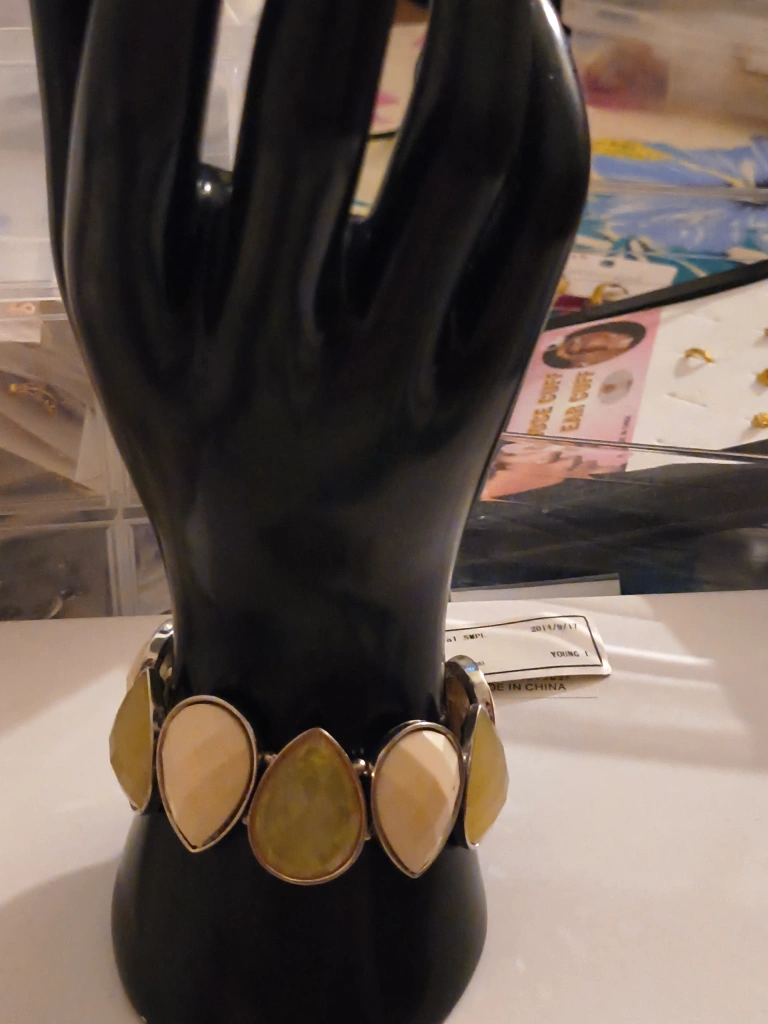 15Stylish bracelet featuring beige and green stones, perfect for adding a touch of elegance to any outfit