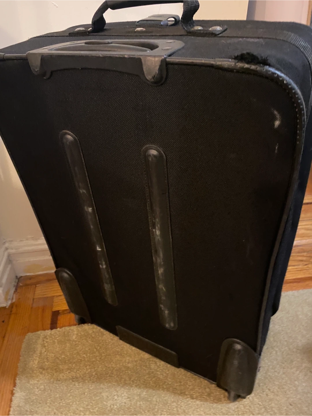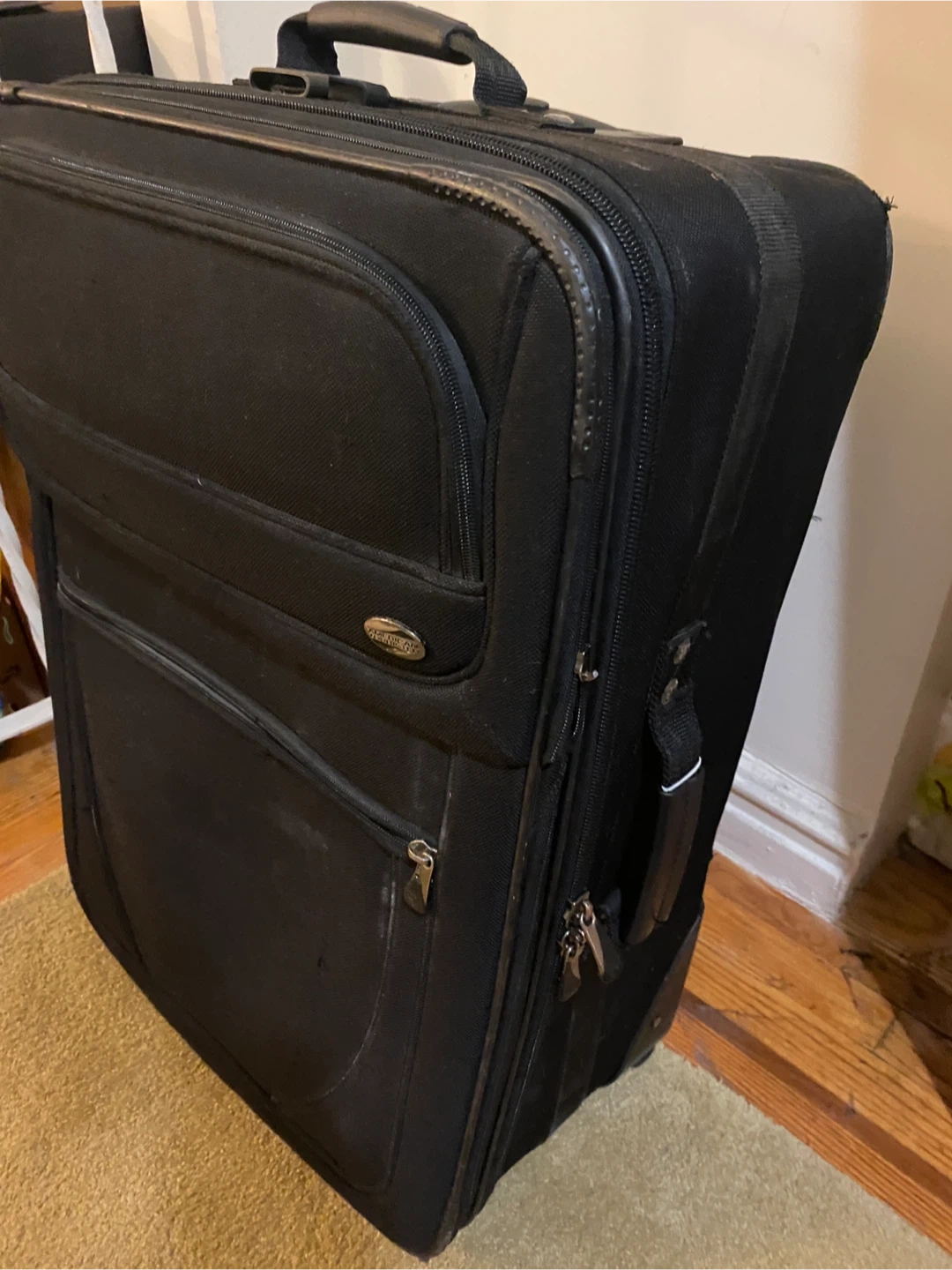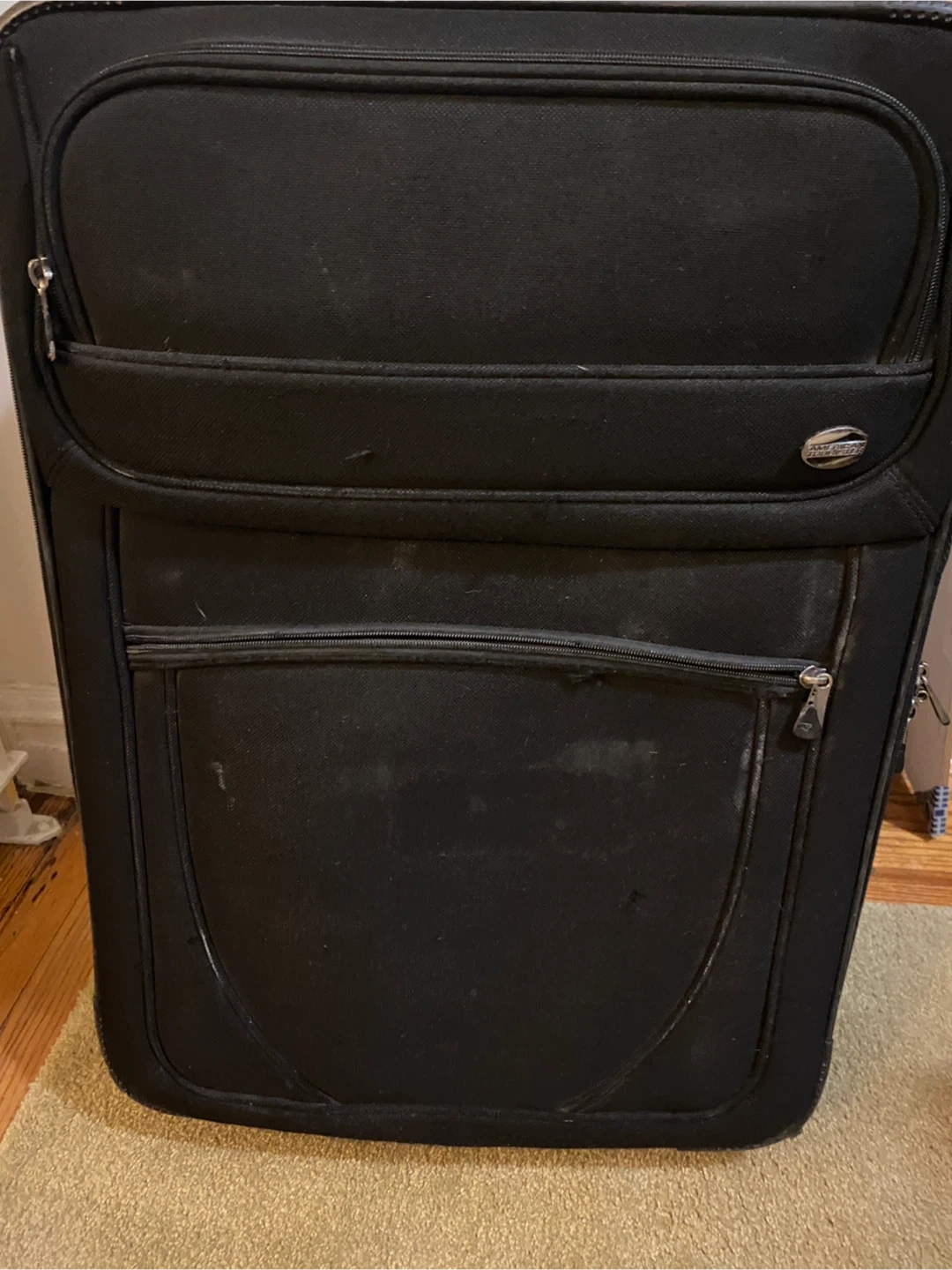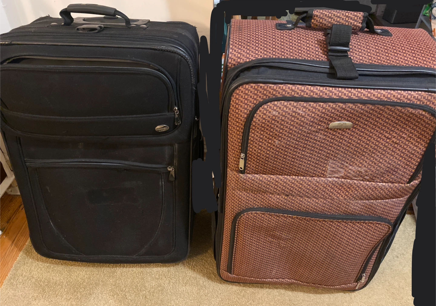 10Two suitcases in good condition. One is black (American Tourister) and the other is brown with a pattern. Both have some signs of use. Price for one $30 and if buy both $50 for two. Size 27 inches x 18 inches x 9 inches