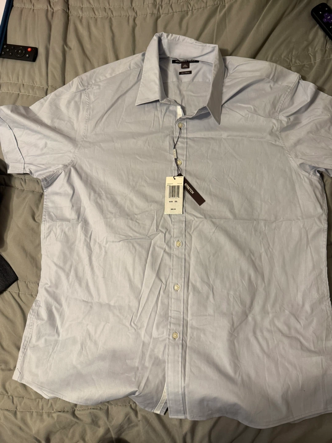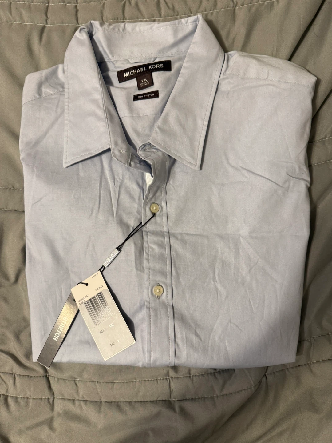 Selling a brand new with tags Michael Kors shirt! It's a light blue color and size XXL. The shirt is made with easy stretch fabric, perfect for a comfortable fit