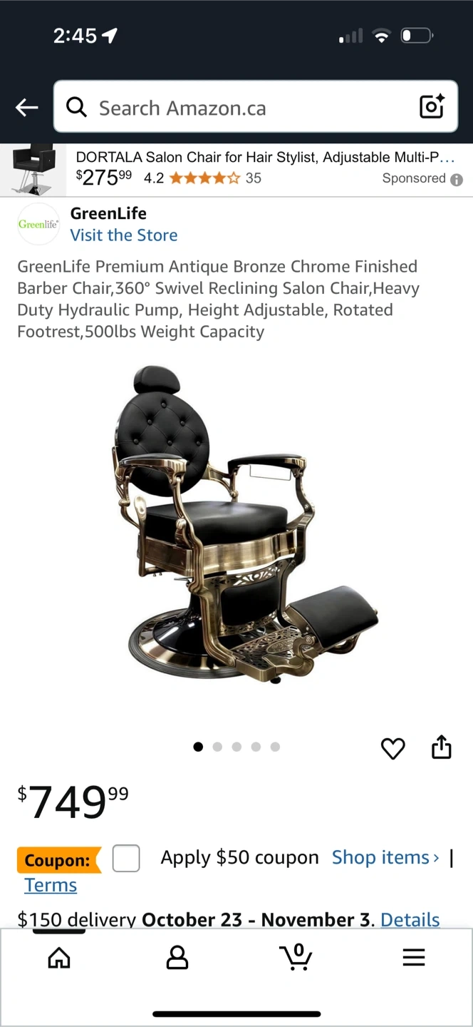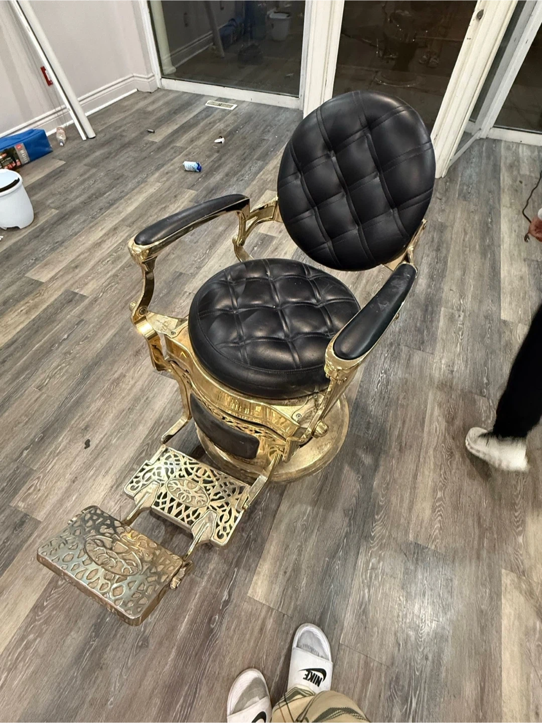 101Selling a GreenLife salon chair in antique bronze and black. It's a real statement piece! It features a 360° swivel, reclining function, heavy-duty hydraulic pump, height adjustability, and a rotated footrest. Holds up to 500lbs. Originally listed for $749.99 We are moving 2 store down the same street and reason we got 1 extra that’s why it’s for sale, it’s very high quality Everything works on it great condition Save nearly 800$ take advantage of this amazing offer from guys from 3kingsbarber shop at Yonge and Wellington Aurora I want 250 for this if u are struggling with cash 200 is fine too Delivery is also available I can personally bring it to ur house but I’ll charge depending how far