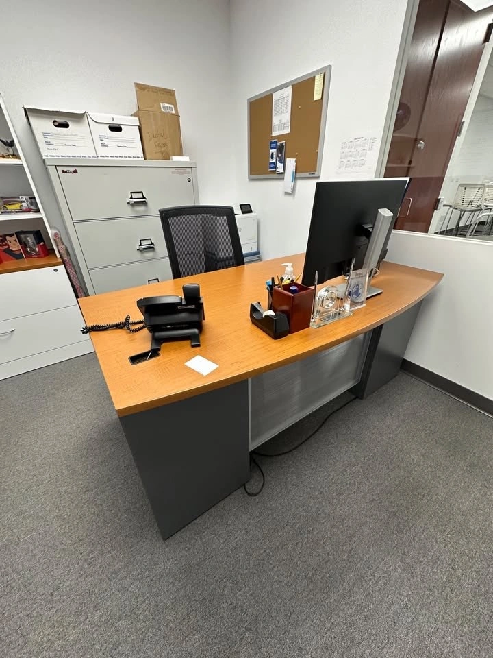 Bow Front Steel Case 3 Drawers with File Hanger Drawer Lockable Dimensions: Length - 66inch Depth - 30inch (not the bow) Height - 29inch (Local Delivery Available)
