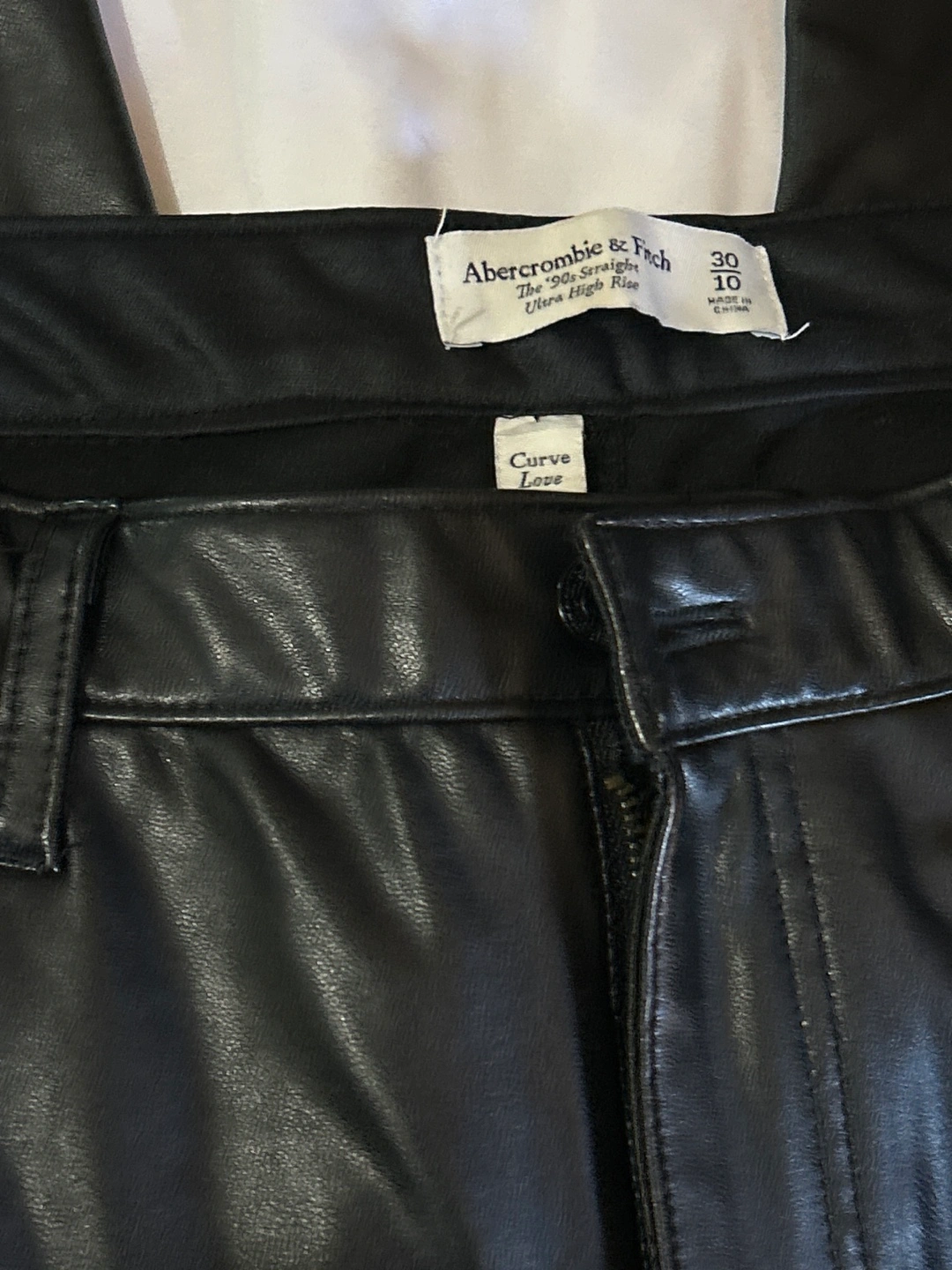 Selling a pair of jeans from Zara and a pair of faux leather pants from Abercrombie & Fitch. The Zara jeans are a dark wash denim and the Abercrombie pants are black. Both are size 10.