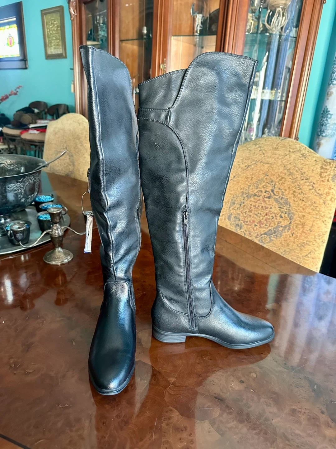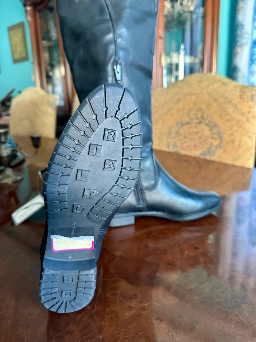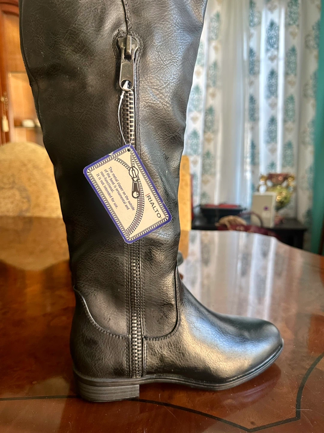 21Selling a pair of Rialto knee-high boots in black. They are a size 7.5M and made of all man-made materials. These stylish boots are perfect for any occasion!